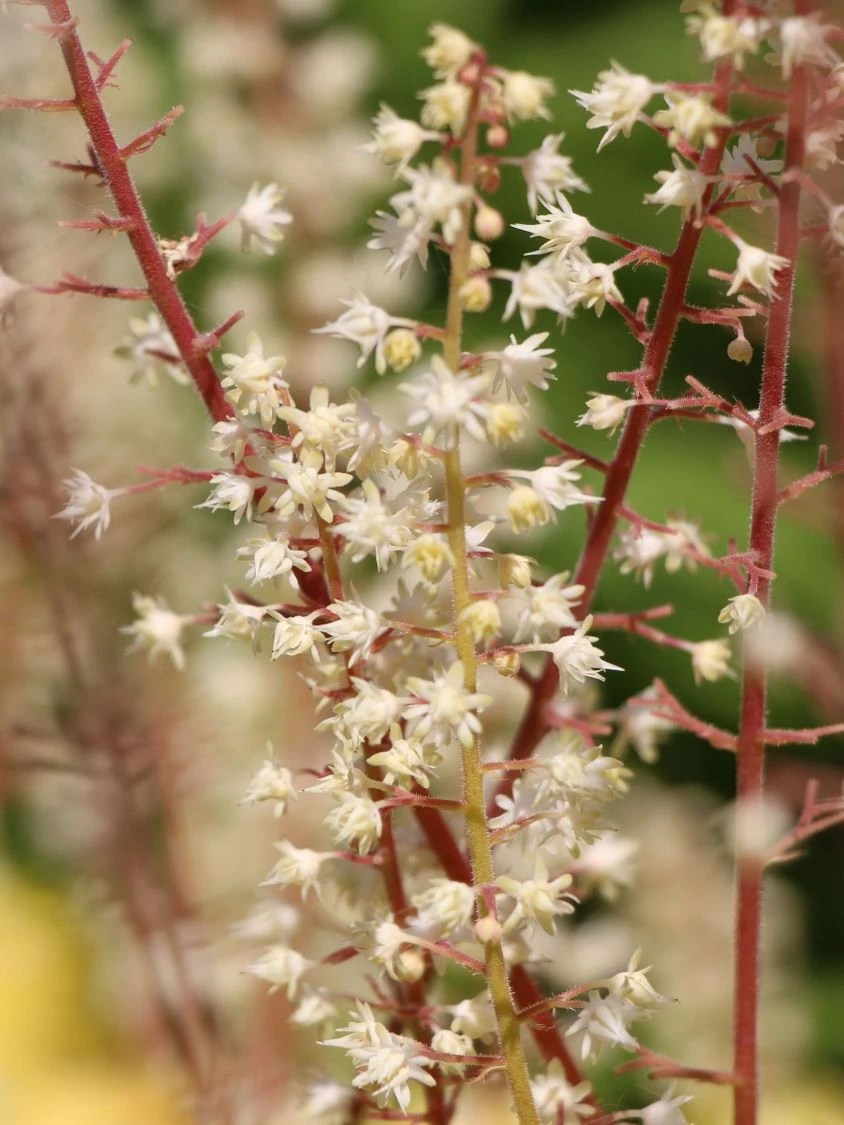 Bei ‚Alabama Sunrise‘ handelt es sich um eine Kreuzung aus einer Schaumblüte und einem Purpurglöckchen. Daher die Bezeichnung Bastard-Schaumblüte. Mit ihren leuchtenden Farben und dem Wechselspiel über die Saison hinweg wertet sie jedes Staudenbeet auf. Die kleinen, weißen Blüten bilden sich als Trauben an aufrecht wachsenden Stängeln. Während der Blütezeit von Mai bis September entwickeln sich ständig neue Blüten. Diese weißen Schönheiten strahlen mit der Sonne um die Wette. Diese Staude eignet sich durch ihre niedrige Wuchshöhe und ihre schöne, halbrunde Form als dekorativer Bodendecker. Als Bepflanzung am Gehölzrand gedeiht die ‚Alabama Sunrise‘ ebenso wie in Steinanlagen. Auch ist die Pflanze mit ihren farbenfrohen Blättern für Kübel oder Ampeln geeignet. Im Winter bleibt dieses herrliche Geschöpf uns mit ihren orange bis rosa Blättern erhalten. Diese Staude zählt zu den Blattschmuckstauden. Sie ist sehr pflegeleicht und benötigt nur nach der Blütezeit ein Rückschnitt. Dabei werden nur die abgeblühten Stängel bis zum Blatthorst geschnitten.
