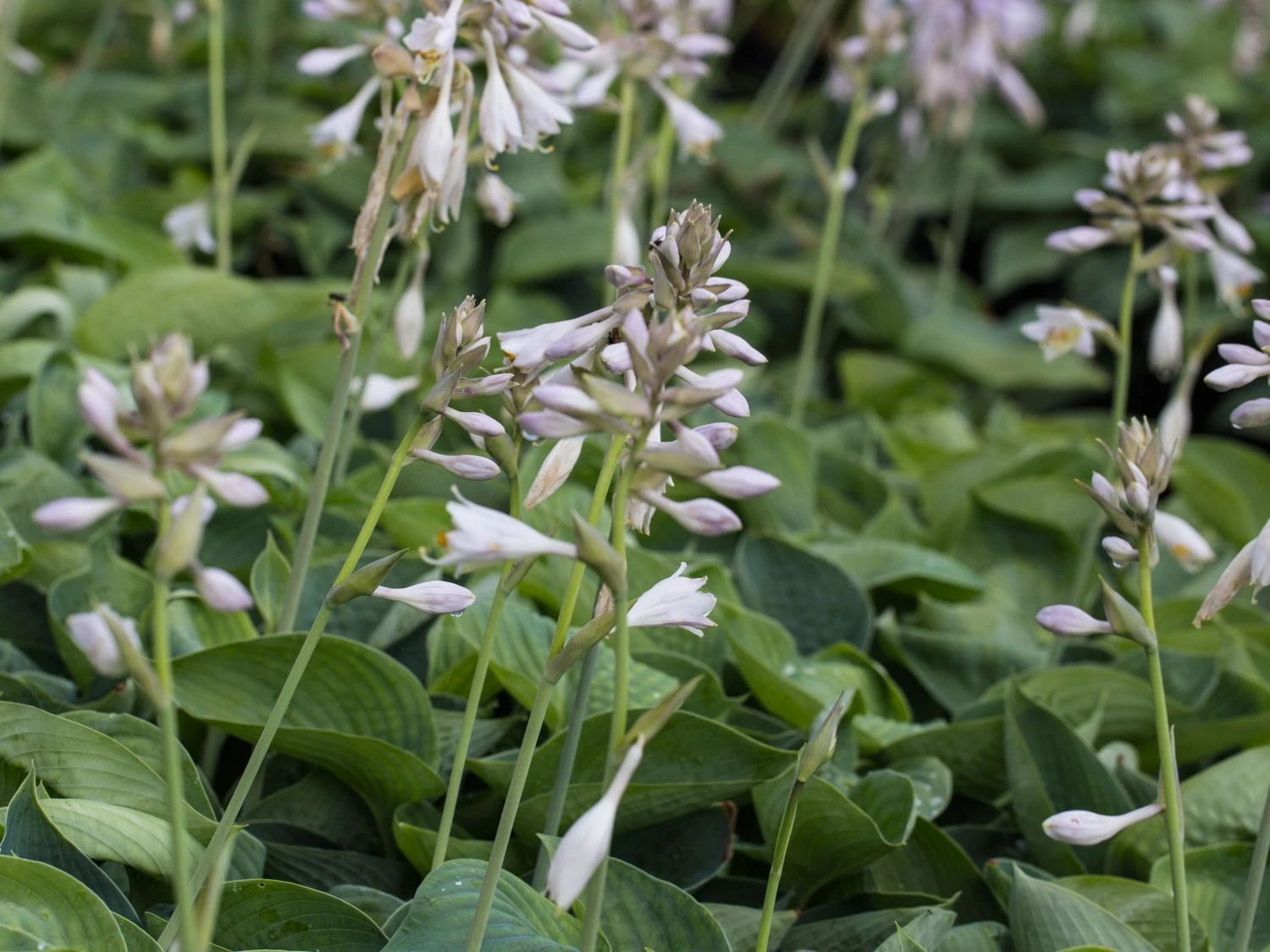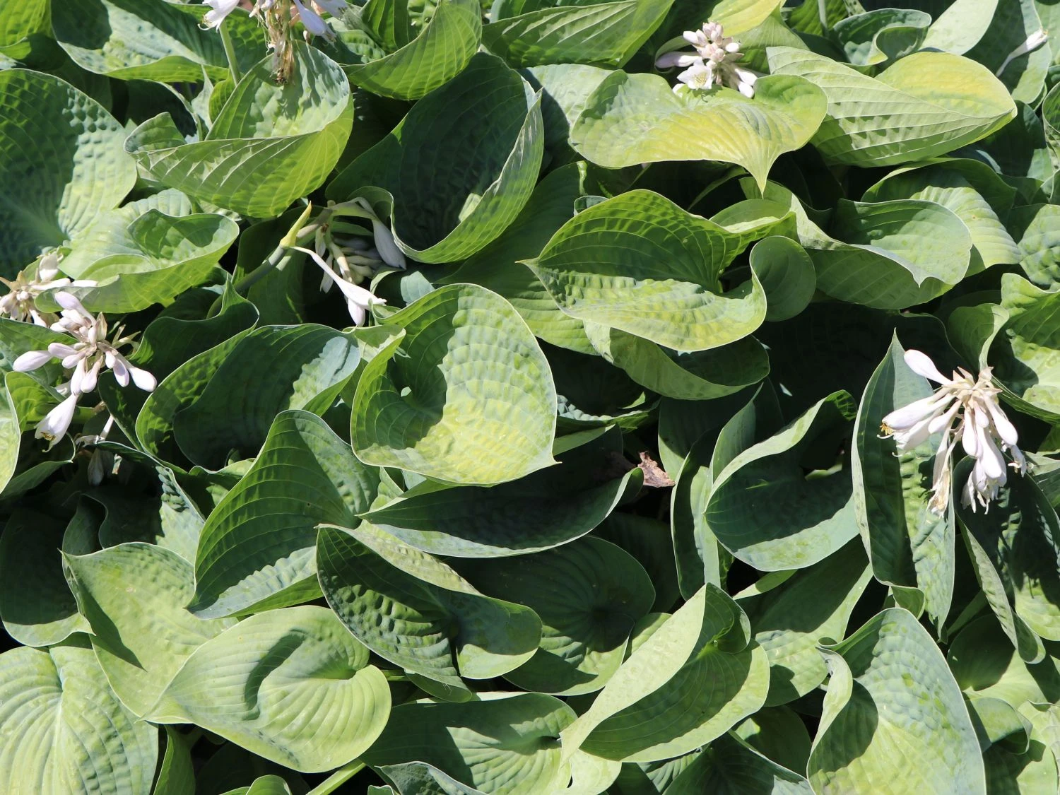 Die gute Blattsubstanz macht das Laub dieser Hosta gegen Schneckenfraß unempfindlich. Die Löffelblatt-Funkie ‚Abiqua Drinking Gourd‘ bildet einen stattlichen Blatthorst. Sie wächst auf bis zu 60 cm in der Breite und nimmte eine ebensolche Wuchshöhe an. Zu ihren attraktiven großen Blättern legt sie sich während der Blütezeit von Juli bis August einen weiteren Schmuck zu. Dann erscheinen die fast weißen Blüten. Die ausdrucksstarke Löffelblatt-Funkie ‚Abiqua Drinking Gourd‘ ist langlebig und ziert über 10 bis 20 Jahre den gleichen Standort. Die Hosta bevorzugt Schatten oder Halbschatten unter anderen Pflanzen und Plätze mit frischem Boden. Ist die Erde nach einigen Standjahren weniger nährstoffreich, empfiehlt sich eine alljährliche Düngung. So entwickelt sich das Wachstum der Hosta tokudama ‚Abiqua Drinking Gourd‘ optimal. Gut versorgt mit Nährstoffen, fällt die Blüte der Pflanze eindrucksvoller aus. Sind die Blüten verblüht, fördert das Entfernen der Stängel die Vitalität der Pflanze. Ein kompletter Rückschnitt im Herbst ist nicht notwendig. Die Staude zieht sich in den Boden zurück und überwintert dort. Im Frühjahr treibt diese Staude erneut aus.