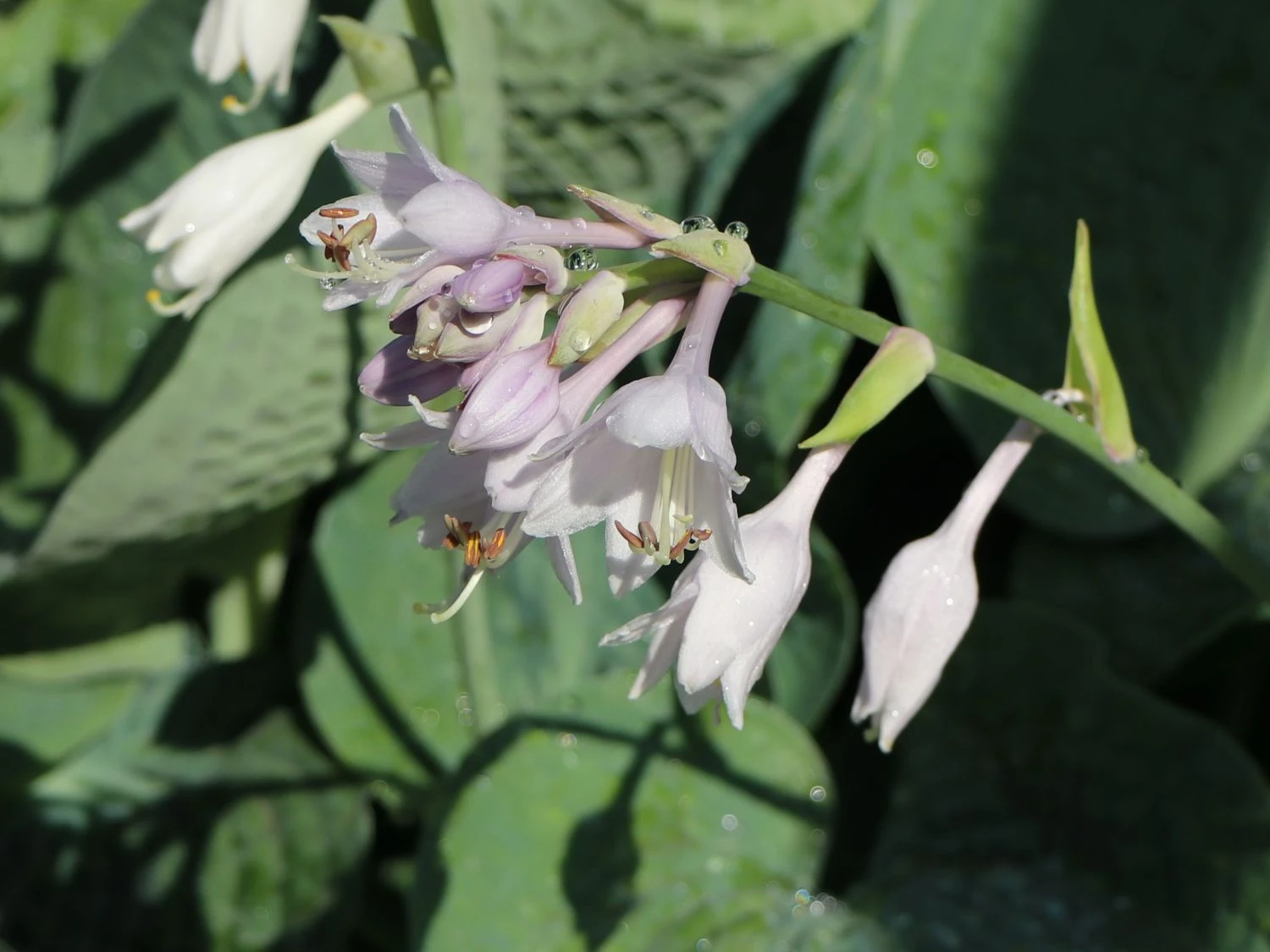 Die Löffelblatt-Funkie ‚Abiqua Drinking Gourd‘ ist eine ausdrucksstarke Staude für die halbschattigen Gartenbereiche und für schattige Ecken. Ihre eindrucksvollen Blätter mit ihrer gehämmert wirkenden Struktur sind ein faszinierender Anblick. Völlig zu Recht, ist sie als Blattschmuckstaude bei vielen Gärtnern beliebt. Es gibt kaum eine bessere Wahl, um den Schattengarten aufzuwerten als die (bot.) Hosta tokudama ‚Abiqua Drinking Gourd‘. Diese Sorte ist eine amerikanische Züchtung von Walden West aus dem Jahr 1989. Die Löffelblatt-Funkie ‚Abiqua Drinking Gourd‘ macht in jedem Garten einen stattlichen Eindruck und bringt mit ihrer Blattfarbe einen Zauber an absonnige Plätze. Die Blätter sind an der Oberseite blaugrau und an der Unterseite silbrig gefärbt. Anfänglich sind die Blätter wie ein Löffel geformt, was der Pflanze ihren Namen einbrachte. Die Löffelblatt-Funkie bietet dem Betrachter ein ganz besonderes Schauspiel bei Regen! Die jungen Blätter der Funkie füllen sich mit Wasser und auf den entfalteten Blattspreiten schimmern große Wassertropfen.