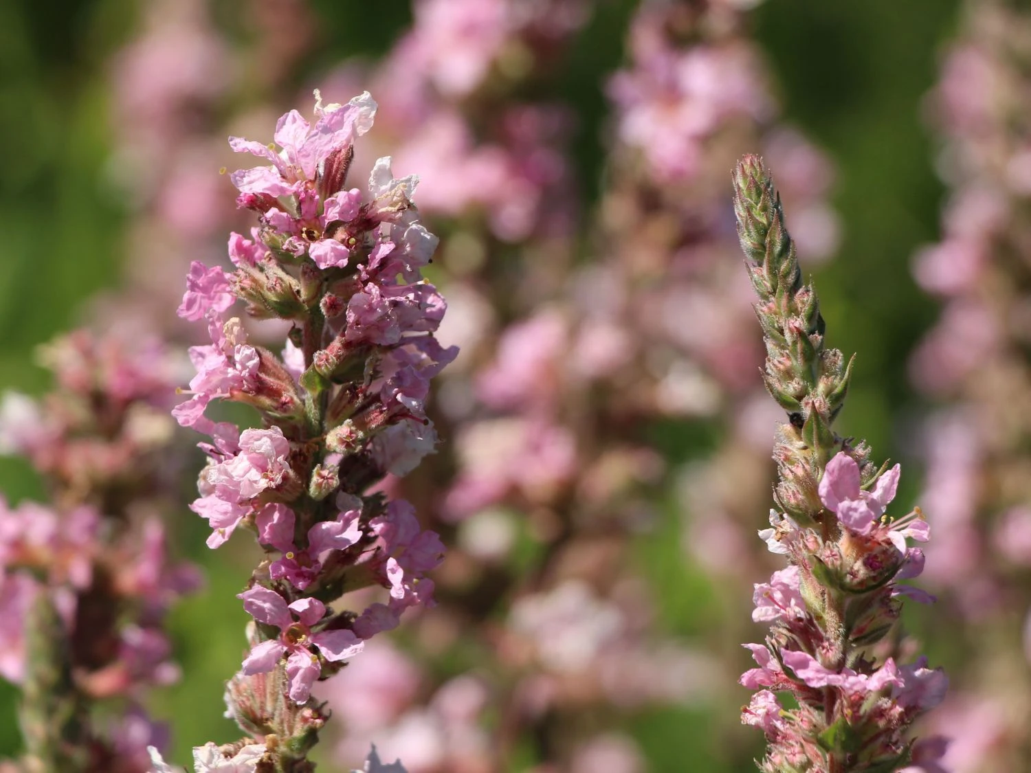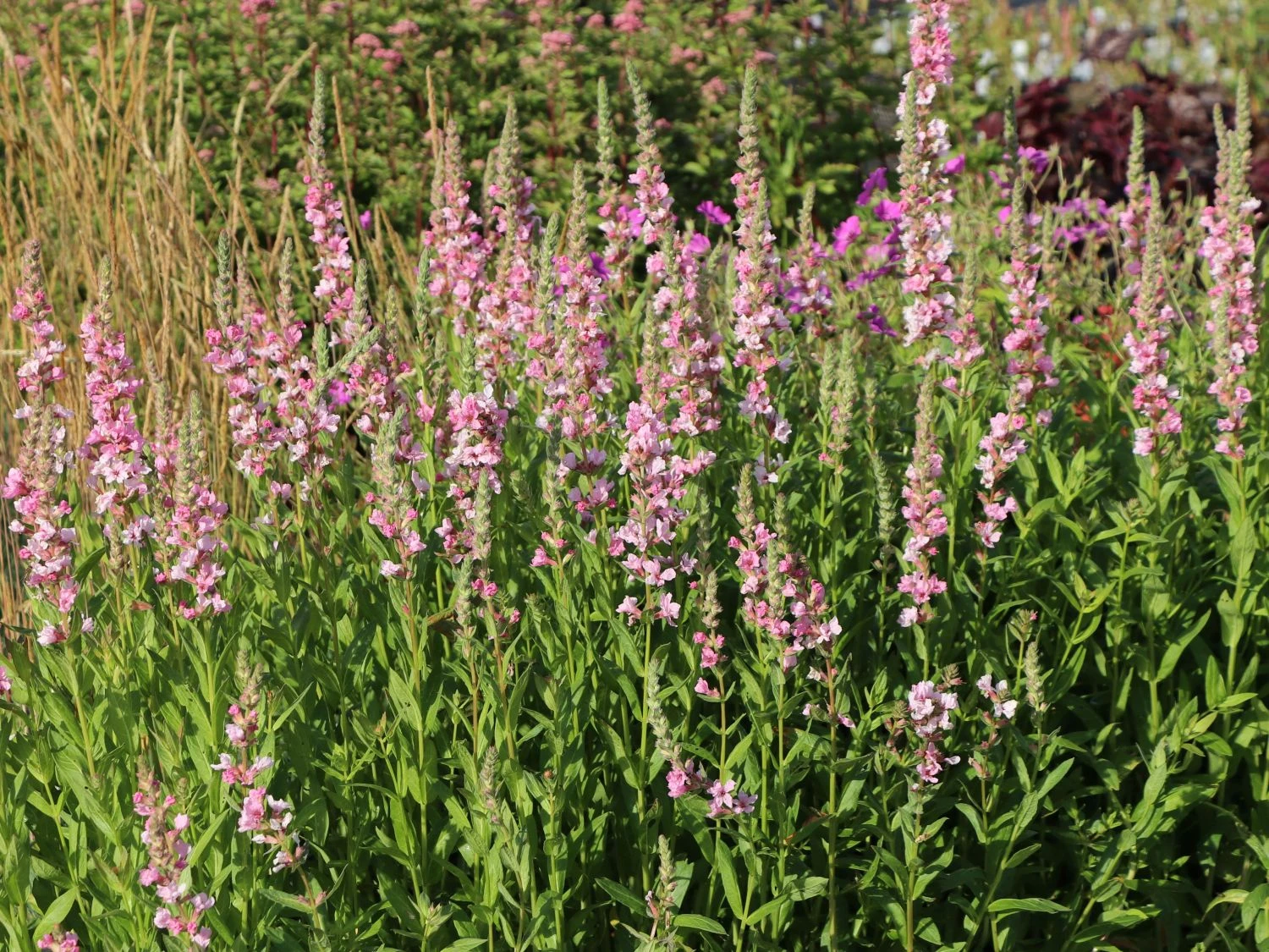 Kurz nachdem er in Mitteleuropa heimisch wurde, setzte man den Blut-Weiderich übrigens auch zum Gerben von Leder ein. Und in Notzeiten verspeiste man ihn sogar – die jungen Sprosse, die Blätter und das weiße Innere der Stängel galten als Gemüse. Oder zumindest als guter Ersatz dafür. Heutzutage allerdings ist der Blutweiderich nichts für den Magen. Dafür umso mehr für das Auge: jeder einzelne Blütenstand von Lythrum salicaria ‚Blush‘ bringt hundert kleine Blüten (und oft noch mehr) hervor. Beim Blutweiderich „Blush“ geht das Herz eines jeden Gärtners auf.