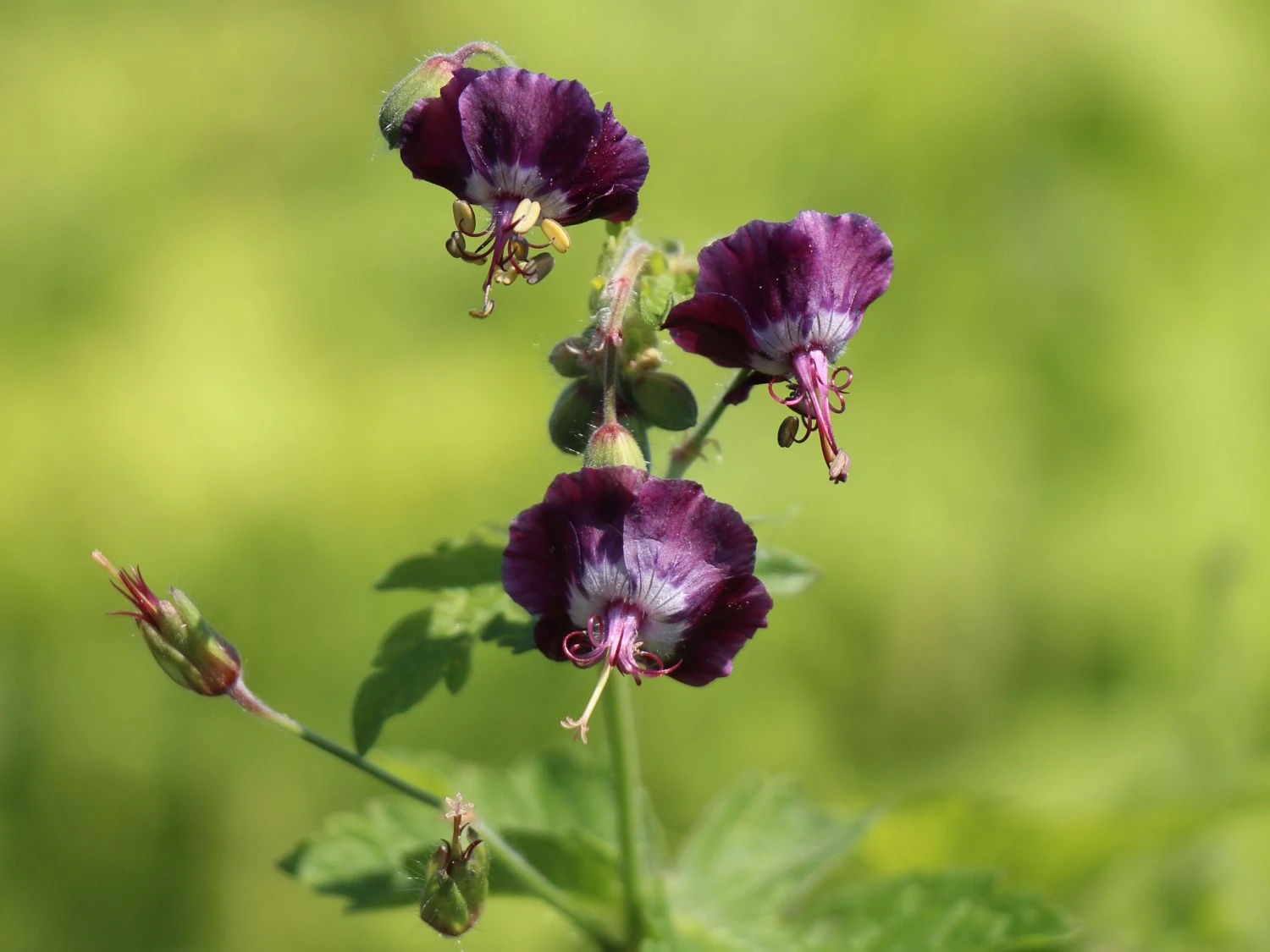 Der Braune Storchschnabel, lateinisch Geranium phaeum genannt, ist eine einheimische Geraniengattung, die ursprünglich in den Voralpen beheimatet war. Durch Verwilderung hat sie sich aber weit nach Norden ausgebreitet und ist heute selbst im Süden Schwedens anzutreffen. Der eigentliche Braunblütge Storchschnabel liebt frische und schattige Plätze. Die Staude blüht von Mai bis Juli in einem schwarzvioletten bis bräunlichen Farbton. Während der Blüte ist sie etwa 50 bis70cm hoch. Die wunderschönen Blüten haben ausgerandete und dicht bewimperte Kronblätter. Da der Geranium phaeum einen gut frischen Boden liebt, eignet er sich gut für ein Beet mit Halbschatten.