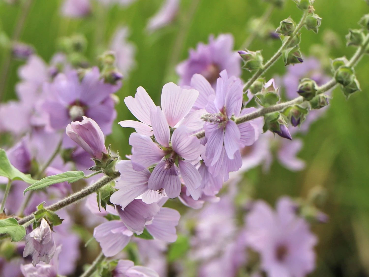 Die Busch-Malve ‚Lilac Lady‘ besitzt kleine, hell-violette Blüten. Deren dunkle Aderung macht sie zu einer sehenswerten Attraktion. Sie gehört zu den wüchsigen Sorten und wächst breitbuschig und aufrecht im Garten heran. Sie erreicht in der Höhe zwischen 130 bis 150 Zentimeter und gesellt sich damit imposant zu anderen Pflanzen im Beet. Sie eignet sich aufgrund der Wuchshöhe perfekt für das mittlere Beet. Auch im Hintergrund entfaltet die (bot.) Lavatera x olbia ‚Lilac Lady‘ ihre volle Wirkung und stellt einen schmückenden Rahmen für das Beet. Die Knospe präsentiert sich im Aufblühen erst glockenartig und zeigt sich im voll aufgeblühten Zustand schalenförmig. Die Blüten sind malvenartig und der Blütenflor ist reich. Diese zauberhafte Pflanze krönt ihr wundervolles Äußeres mit einer extrem langen Blütezeit von Juli bis September. Das macht sie im Sommer und bis in den Herbst zu einem einzigartiger Blickfang im Garten. Ob im Freiland oder in einem Pflanztopf, diese tolle Pflanze lässt sich gut kultivieren. Dabei ist zu berücksichtigen, dass sie in einem Kübel weniger langlebig ist, als frei im Garten platziert. Eine ausreichende Wasserversorgung ist wichtig. Die Blätter der Busch-Malve ‚Lilac Lady‘ sind sommergrün und besitzen herzförmige gelappte Blätter. Sie sind graugrün in ihrer Färbung. Der aufrecht wachsende Stängel der Pflanze ist dick, stark und leicht weißlich behaart.
