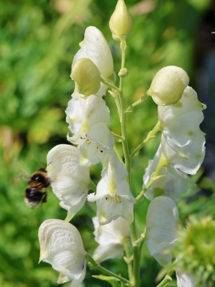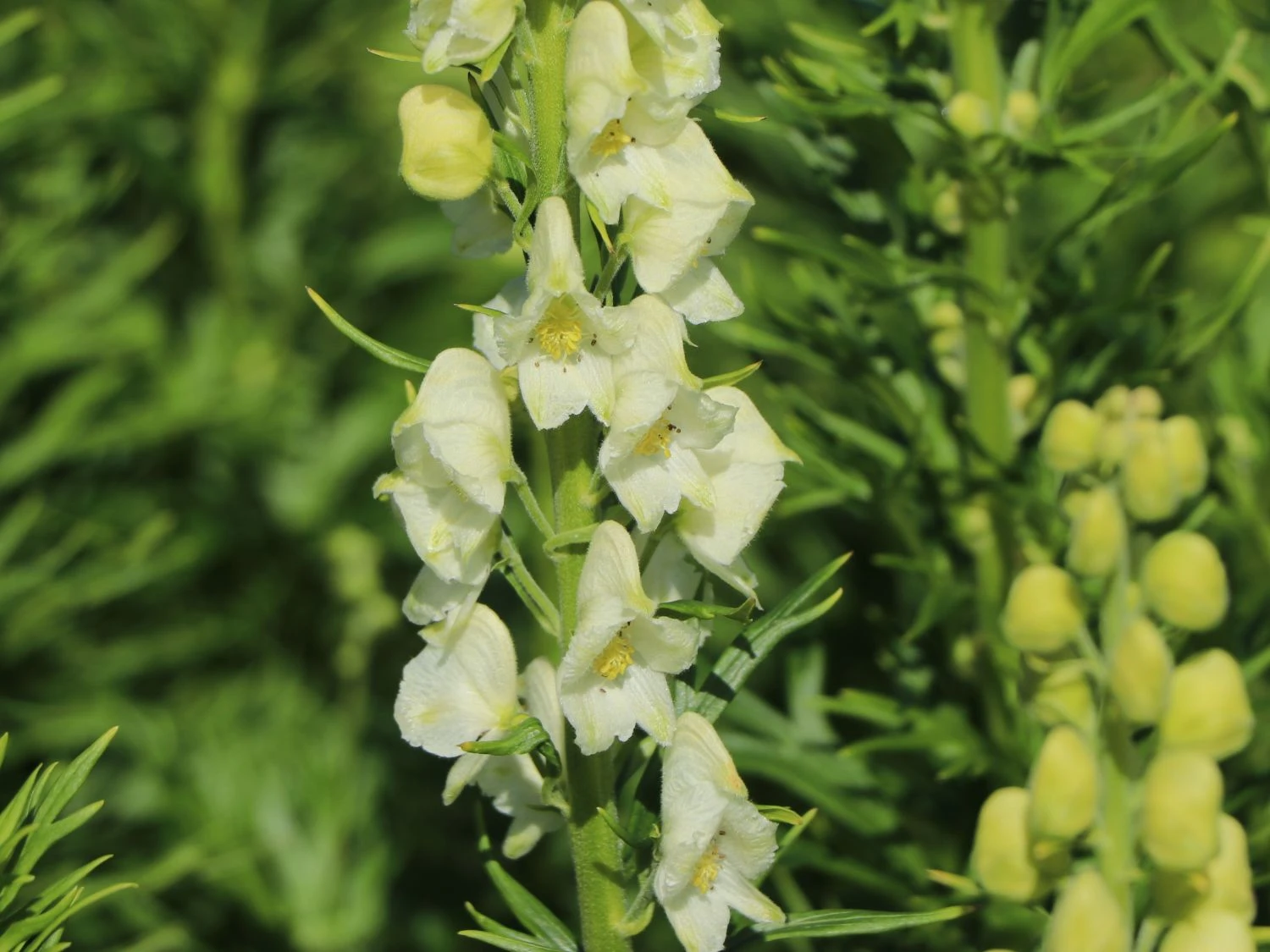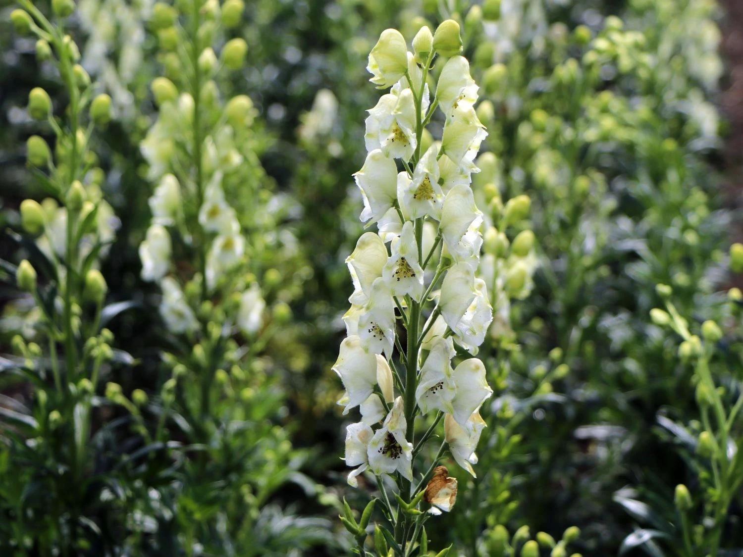 Der Eisenhut ‚Schneewittchen‘ genießt einen Standort im sonnigen bis halbschattigen Bereich. In der Zeit von Juni bis Juli bildet er seine traumhaften Blütenstände aus und lockt zahlreiche Insekten an. Bienen und Hummeln erfreuen sich an dem angebotenen Nektar und den Pollen. Mit seiner erstaunlichen Höhe setzt Aconitum napellus ‚Schneewittchen‘ exakt senkrechte Akzente im Staudenbeet. Die wunderschönen weißen Blüten sind helmförmig und mit einem Hauch von Grün versehen. Sie hellen dunklere Gartenbereiche wunderbar auf. Traumhaft wirken sie am halbschattigen Rand von Gehölzen. Traumhafte Begleiter zum Eisenhut ‚Schneewittchen‘ sind Funkien, Farne, Waldglockenblumen, Sterndolden oder Storchschnäbel. Die Mixtur aus heller und dunkler blühenden Pflanzen lässt malerische Bilder entstehen und erhöht den Zierwert des Beetes. Beim Bepflanzen einer größeren Fläche, achtet der Gärtner auf einen angemessenen Pflanzabstand. Zwischen einzelnen Exemplaren ist eine Distanz von 35 Zentimetern zu empfehlen. Auf einem Quadratmeter finden acht bis zehn Exemplare ausreichenden Platz, um sich perfekt zu entwickeln.