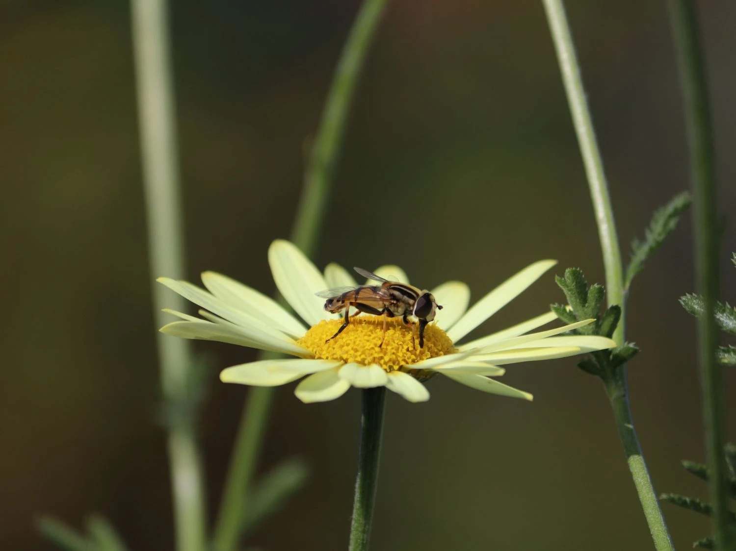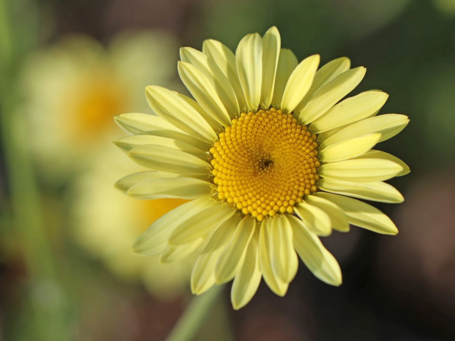 Eine sogenannte Fächerkamille, das ist die Färber-Hundskamille ‚E.C. Buxton‘, die sommerliche und sonnengelbe Farben bereits im Frühjahr in das eigene grüne Paradies bringt. Der Name der schönen Gartenpflanze stammt aus mittelalterlichen Zeiten, in denen man aus den Blüten dieser Pflanze noch gelbe Wollfarbstoffe gewonnen hatte.