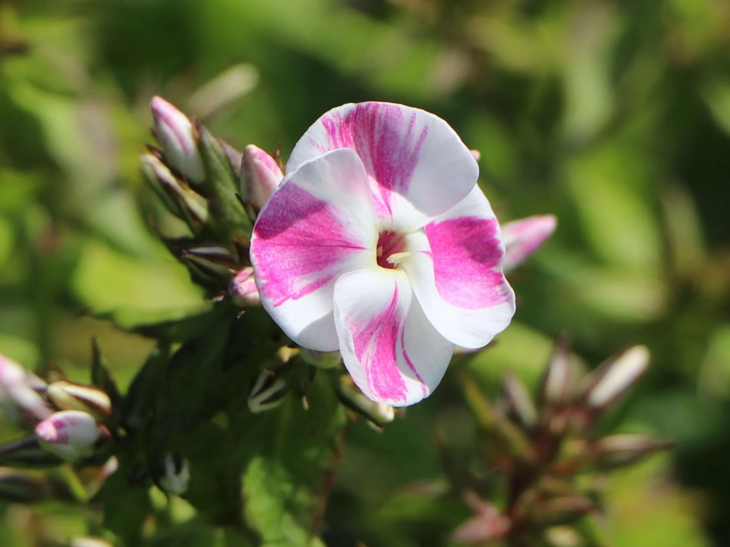 Die Flammenblume ‚Bambini Candy Crush‘ ist eine Phlox-Sorte, deren zweifarbige Blüten bombonartig aussehen und jeden Betrachter verzücken. (Bot.) Phlox paniculata ‚Bambini Candy Crush‘ begeistert vom Frühsommer bis in den Herbst. Ab Juli blüht die Pflanze ununterbrochen bis in den August. Die mehrjährige Staude aus der Bambini-Reihe erreicht eine Höhe und Breite von rund 25 bis 30 Zentimeter. Damit lässt sie sich perfekt in Beete und Rabatten einsetzen und ermöglicht unzählige Varianten für himmlische Arrangements. Die Flammenblume ‚Bambini Candy Crush‘ bietet einen wundervollen Anblick im sommerlichen Garten. Sie blüht durch den ganzen Sommer hindurch und zeigt sich von ihrer schönsten Seite.