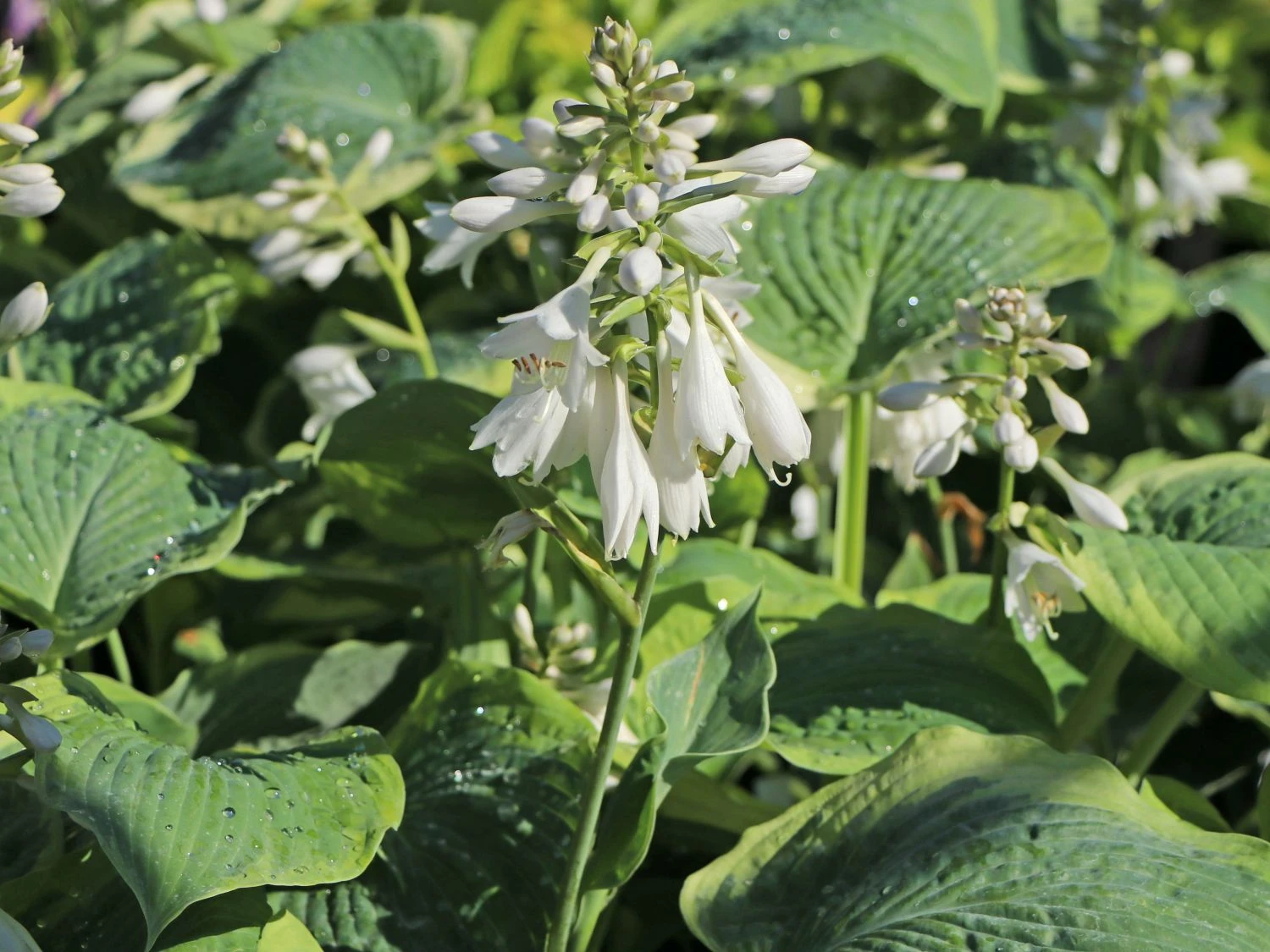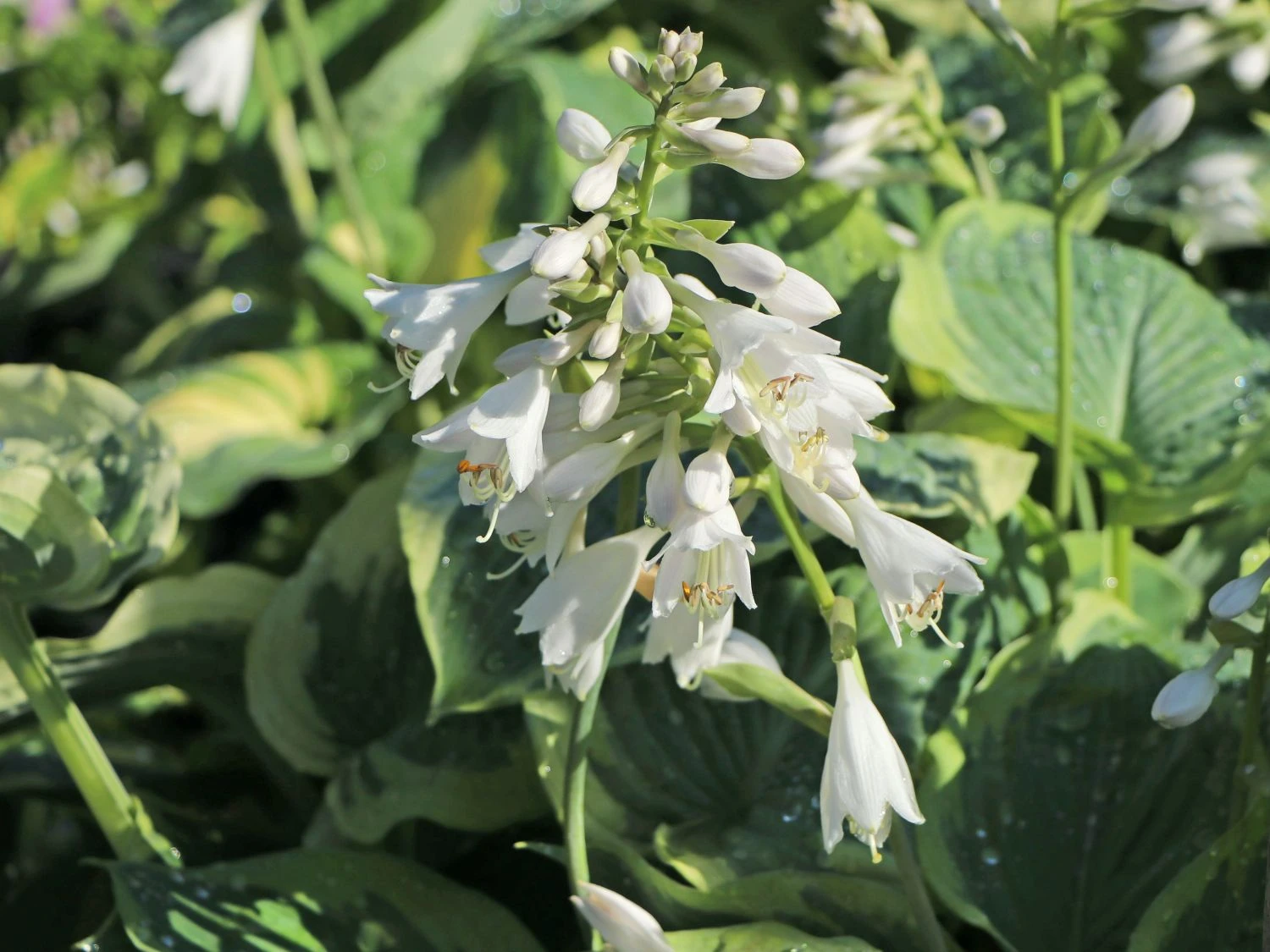 Er kann sich Zeit lassen und immer wieder neue Ideen in die Gestaltung einfließen lassen. Die Funkie ‚American Halo‘ mit ihren schönen weißen Blüten sind eine sehr gute Grundlage für alle möglichen Kombinationen und kann sowohl mit Rosenstämmen oder auch mit chicen Gräsern dekorativ platziert werden. Die Hosta braucht bei ausgeprägter Trockenheit unbedingt eine zusätzliche Portion Wasser, die möglichst morgens oder abends verabreicht werden kann. Für einen Rückschnitt der Überbleibsel der Blütezeit ist die Hosta dankbar und wird sich im nächsten Juli wieder mit den schönen weißen Blüten in voller Pracht präsentieren und ihre dekorativen Aufgaben mit Bravur bewältigen.