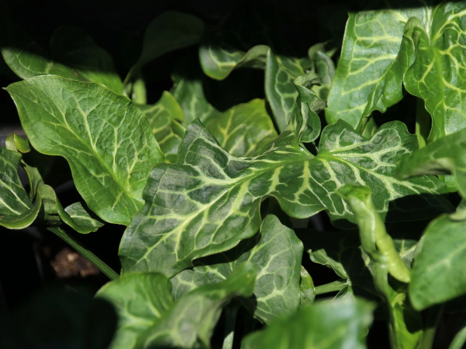Diese schöne Staude glänzt durch ihr ungewöhnliches Wesen. Während andere Pflanzen ihre Blätter zum großen Teil im Winter abwerfen, behält der Geaderte Aronstab ‚Pictum‘ seine wunderschöne Blätterpracht. Erst im Herbst treibt die Pflanze aus und wirft ihre Blätter im darauffolgenden Sommer ab. Die glänzenden Blätter dieser prachtvollen Staude sind pfeilförmig, ganzrandig und grundständig. Das wintergrüne Laub ist in der Grundfarbe dunkelgrün. Die Blattadern erscheinen weiß-gelb bis silbrig und stechen dekorativ hervor. Der beste Platz für diese liebenswerte Staude ist warm, humos und durchlässig. Der Geaderte Aronstab ‚Pictum‘ bevorzugt einen halbschattigen bis schattigen Standort. Gerne zeigt er seinen Glanz am Rand von Gehölzen.