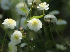 Bereits in der Renaissance war der Hahnenfuß ‚Pleniflorus‘ als Beetpflanze ein Renner in Englischen Gärten. Erst viel später fand diese zauberhafte Staude auf dem europäischen Kontinent Einsatz in Garten-Arrangements. Von Mai bis in den Juni schmückt sich der Gefülltblühende Hahnenfuß ‚Pleniflorus‘ mit einer sagenhaften Blütenfülle. Die weißen Blütenbälle stehen dicht an dicht und bringen einen schneeweißen Farbtupfer in Beet, Rabatten oder Pflanztrog. Wunderschön sieht der Gefülltblühende Hahnenfuß ‚Pleniflorus‘ am Gehölzrand und in Wassernähe aus. Er schmückt beispielsweise Teichränder oder Bachläufe und lässt sich wunderbar mit Frühsommerblühern im Gartenbeet kombinieren. Mit Akelei, Schwertlilien, Eisenhut oder Glockenblume sieht dieser Hahnenfuß überwältigend aus. Sie entwickelt einen nostalgischen und romantischen Charme. ‚Pleniflorus‘ passt sich jedem Gartenbild unkompliziert an und schmückt Bauerngärten, naturnahe Gärten oder formale Beete und Rabatten. Die Staude wächst buschig und horstbildend. Sie wird zwischen 20 und 50 Zentimeter hoch und fast ebenso breit. Die gefüllten schalenförmigen Blüten sind klein und strahlend weiß. Die Laubblätter sind gefiedert und am Rand grob gesägt.