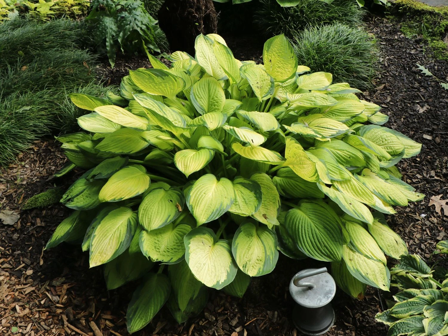 Langlebiger und hübschen Blickfang . Besonders auffällig bei der Graublaue-Herzblattlilie ‚June‘ ® sind die herzförmigen, mehrfarbigen Blätter. Die dekorativen Blüten geschnitten, sind als Blumen für die Vase im Einsatz. Ihr bevorzugter Lebensbereich ist zwischen Gehölzen oder am Gehölzrand. Bekommt die Staude einen halbschattigen Standort mit gut durchlässigem Boden, verzaubert sie ihren Besitzer viele Jahre mit ihrer ansprechenden Optik. Richtig gut fühlt sich die Staude in kleinen Gruppen ihrer Gattung. Tuffs von drei bis fünf Herzblattlilien bilden einen schönen Blickfang im Garten. Auch in Einzelstellung kommt sie schön zur Geltung. Bei einem Pflanzabstand von 40 bis 50 Zentimeter sind fünf Pflanzen auf einem Quadratmeter angemessen.