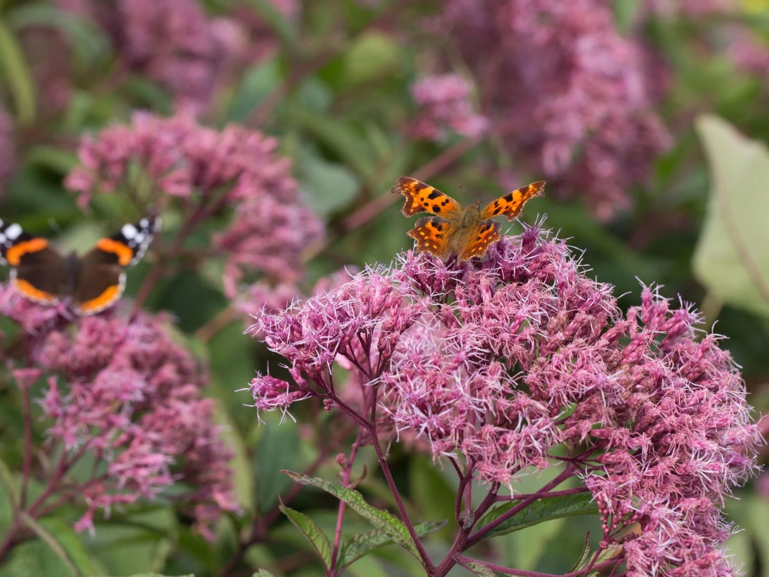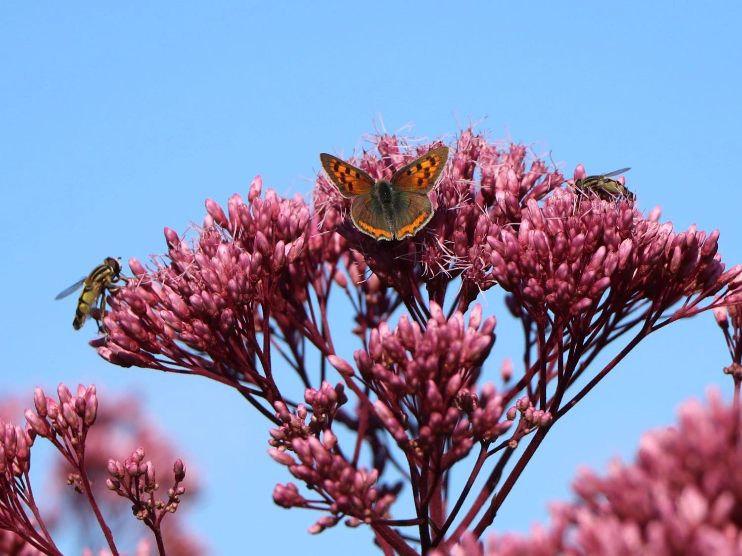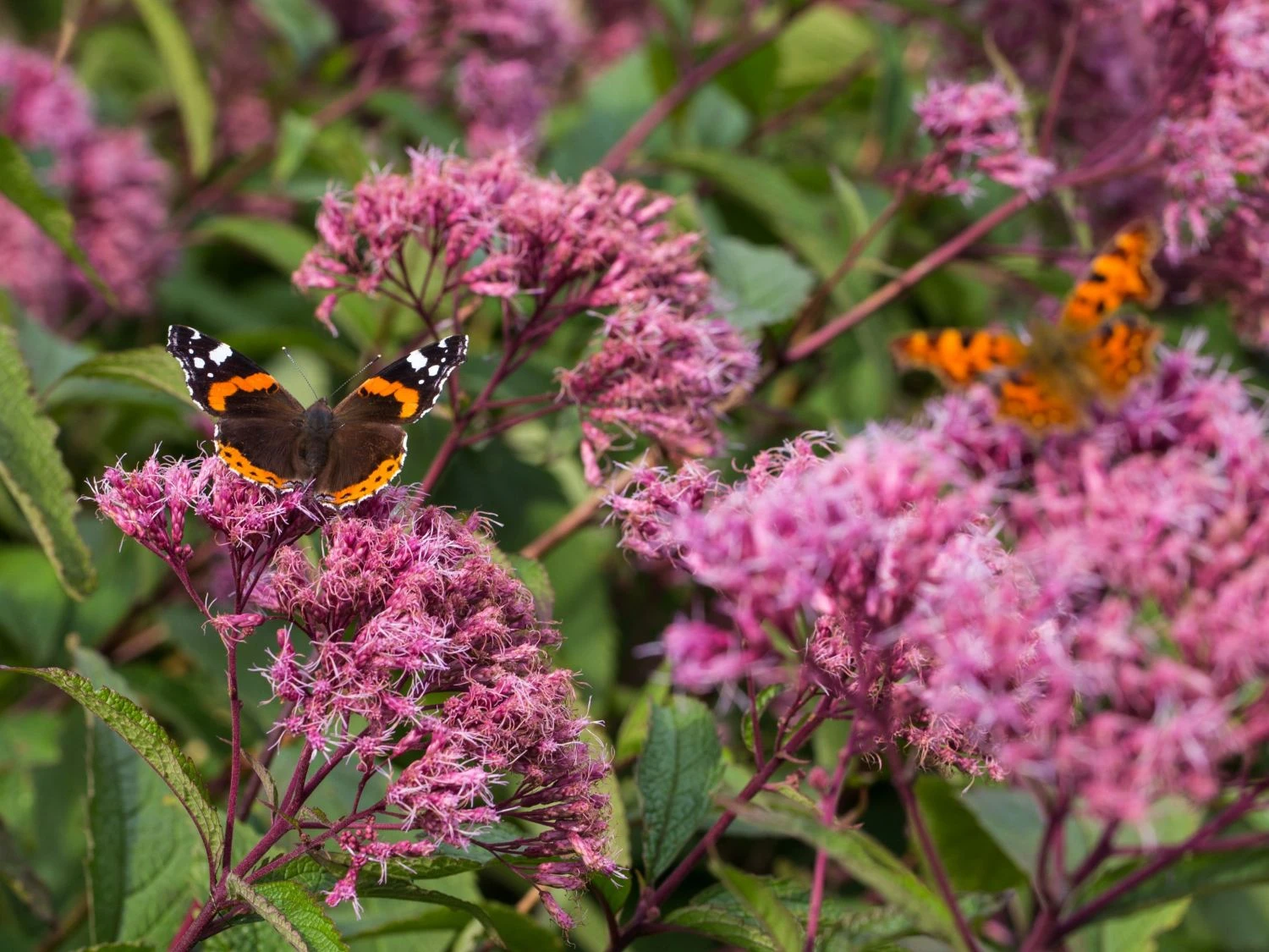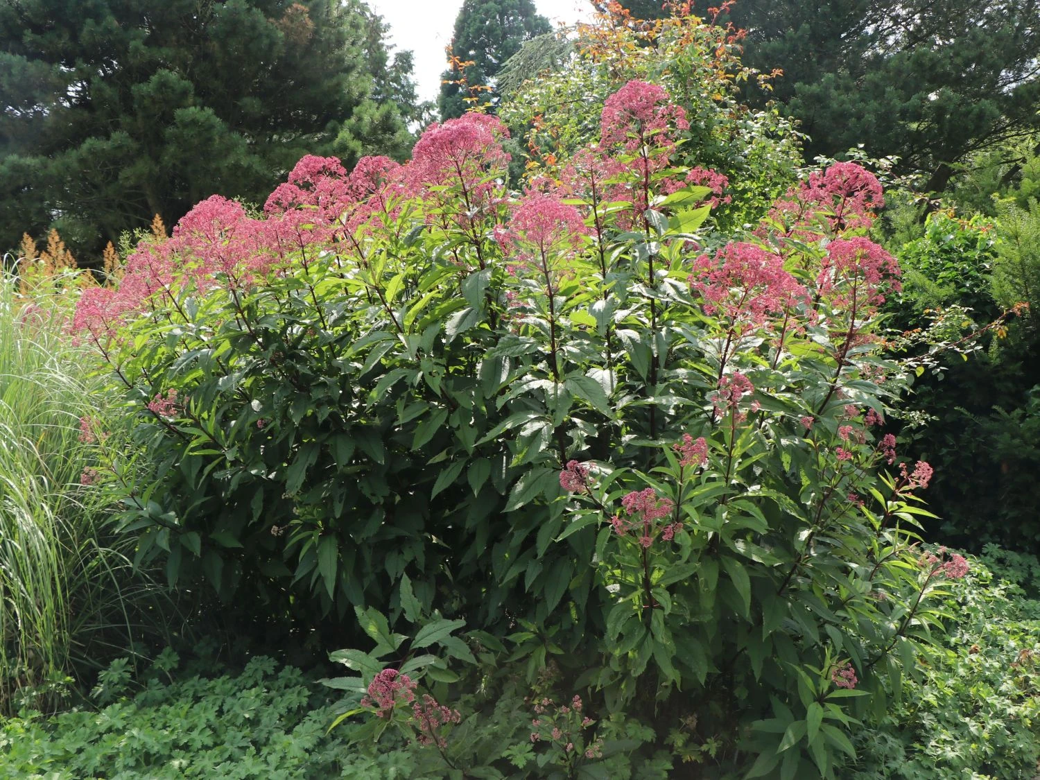 Mit ihrer Höhe von ca. 150 bis 160 Zentimeter ist sie sehr gut für Einzelpflanzungen (Solitär) im Beet oder am Teichrand geeignet. Der Wasserdost muss nicht am Wasser stehen, wie sein Name vermuten lässt, der Boden sollte aber nicht zu trocken sein, denn der rote Wasserdost liebt es etwas feuchter. Normaler bis lehmiger Gartenboden für ein gutes Gedeihen. Nicht nur wir Menschen erfreuen uns an dem Farbenspiel, sondern auch Schmetterlinge und Bienen finden die Blüten äußerst attraktiv. Vor der Blütezeit zieren die Knospen und später die Samenstände. Selbst im Herbst, wenn die Blätter schon gefallen sind, sieht der ‚Glutball‘ mit den kräftigen, rotbraunen Stielen noch sehr attraktiv.