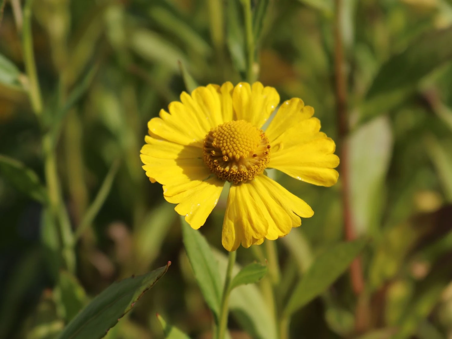 Die Herbst Sonnenbraut blüht in mittelgroßen Körbchen, deren Blütenmitte weit hervorsteht und so einen ganz besonderen, gefüllt wirkenden Eindruck vermittelt. Helenium autumnale ‚Helena Yellow‘ hat zahlreiche einzelne Blüten an einer Staude, die miteinander verzweigt wie ein doldenartiger Blütenstand anmuten. Nicht nur im Garten, sondern auch als Schnittblume überzeugt sie mit langer Frische und Blüte und eignet sich gleichermaßen für einen Strauß mit anderen Sonnenbraut Arten, aber auch mit Rosen oder Astern. Es lohnt sich für den Gärtner, Helenium autumnale ‚Helena Yellow‘ bereits vor dem ersten Frost zu pflanzen und damit zu begünstigen, dass die Staude bereits im Frühjahr austreibt und auch im ersten Jahr mit voller Blütenpracht überzeugt. Auch starker Frost schränkt die problemlose Überwinterung am Pflanzort nicht ein.