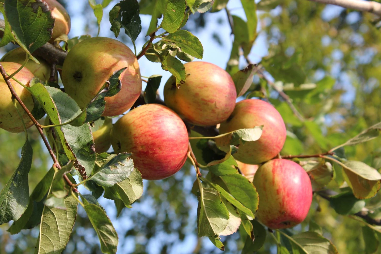 Der Herbstapfel ‚Ariwa‘ begeistert mit einer reichen Ernte an aromatischen Früchten. Seine Erntezeit dauert von Mitte September bis Mitte Oktober. Er bildet mittelgroße, kugelige Äpfel aus, deren Schale in einem kräftigen Grüngelb schimmert. Auf der Sonnenseite sind sie leuchtend orangerot marmoriert. Sie verwöhnen den Gaumen mit ihrem knackigen, erfrischend saftigen, festen Fruchtfleisch und dem süß-säuerlichen, harmonischen Geschmack. Malus ‚Ariwa‘ punktet nicht nur mit leckeren Früchten, sondern auch mit bezaubernden Blüten und dekorativen, gesunden Blättern. Von April bis Mai ist er mit kleinen, schalenförmigen Blüten übersät, die sich in einem zarten Rosa präsentieren. Sie verströmen einen leichten, anmutigen Duft. Für Bienen, Hummeln und andere Insekten sind sie eine wertvolle Nahrungsquelle. Der Herbstapfel ‚Ariwa‘ besitzt eiförmige Blätter, die vorn zugespitzt sind. Sein Laub erscheint in einem frischen Grün und verwandelt seine Farbe im Herbst in ein strahlendes Gelb.