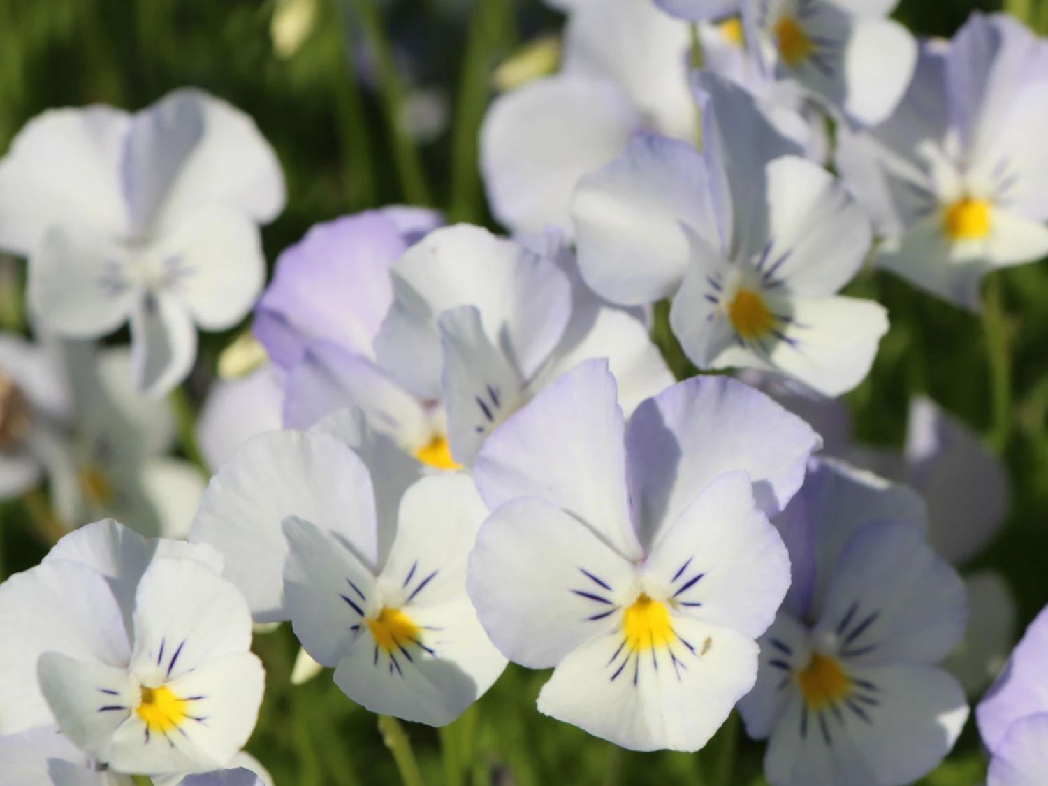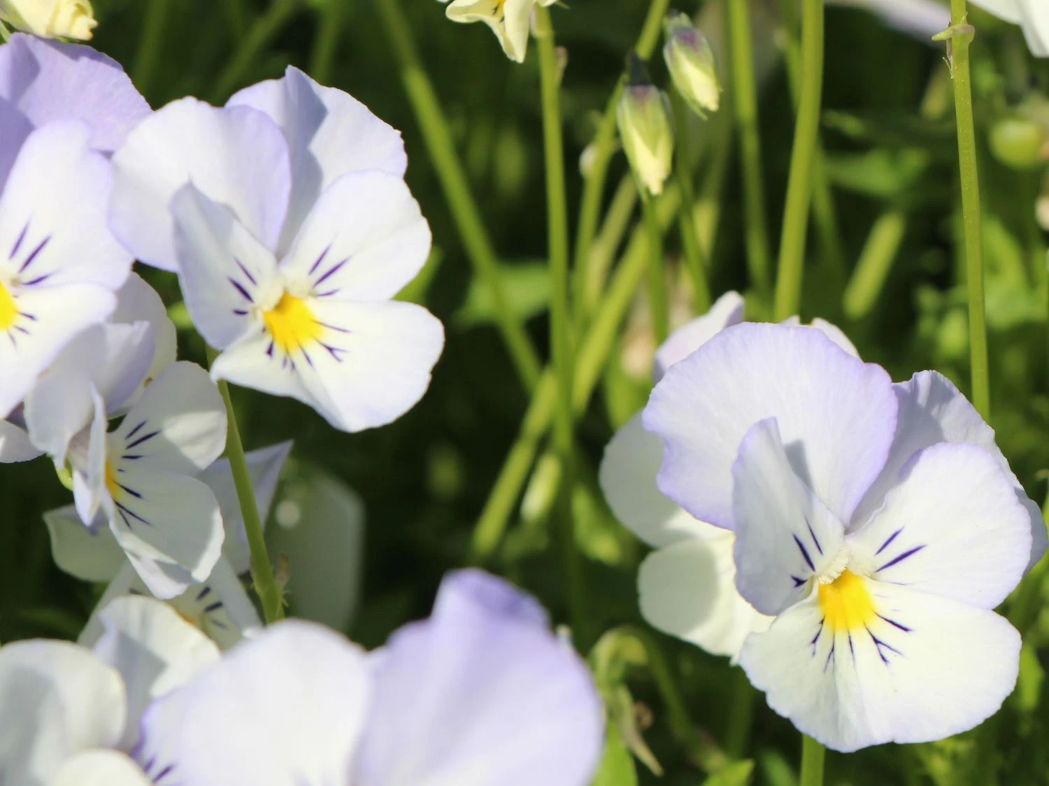 Gern steht das Viola cornuta ‚Milkmaid‘ mit drei bis zehn anderen seiner Sorte zusammen. Der Dauerblüher wächst kriechend und bedeckt den Boden. Deshalb eignet sich die Pflanze sehr gut zum Bepflanzen von Grabstätten. Auch einen Heidegarten bereichert die üppig blühende Pflanze. Die kleine Pflanze wird aus Stecklingen vermehrt. Vor allzu strengem Frost wird die krautige Pflanze mit einigen Zweigen der Fichte gut geschützt. Sobald die ersten warmen Tage des Jahres nahen, blitzen die fröhlichen Blüten auf dem dichten Laub auf und Viola cornuta ‚Milkmaid‘ blüht dann bis in den Herbst hinein. Wenn die ersten Blüten verwelken, empfiehlt sich ein Rückschnitt des Hornveilchens / Gehörnten Stiefmütterchens ‚Milkmaid‘, damit die Staude noch hübscher blüht. Die Blätter bilden dichte Horste, von denen aus die milchigblauen Blütengesichter in die Welt strahlen. Nicht nur Schnecken, Ameisen und Vögel finden Geschmack an Teilen der reizenden Pflänzchen. Viele Köche setzen die zarten Blüten auf den Speiseplan. Sie sind eine originelle Zutat für Salate, Suppen und Desserts.