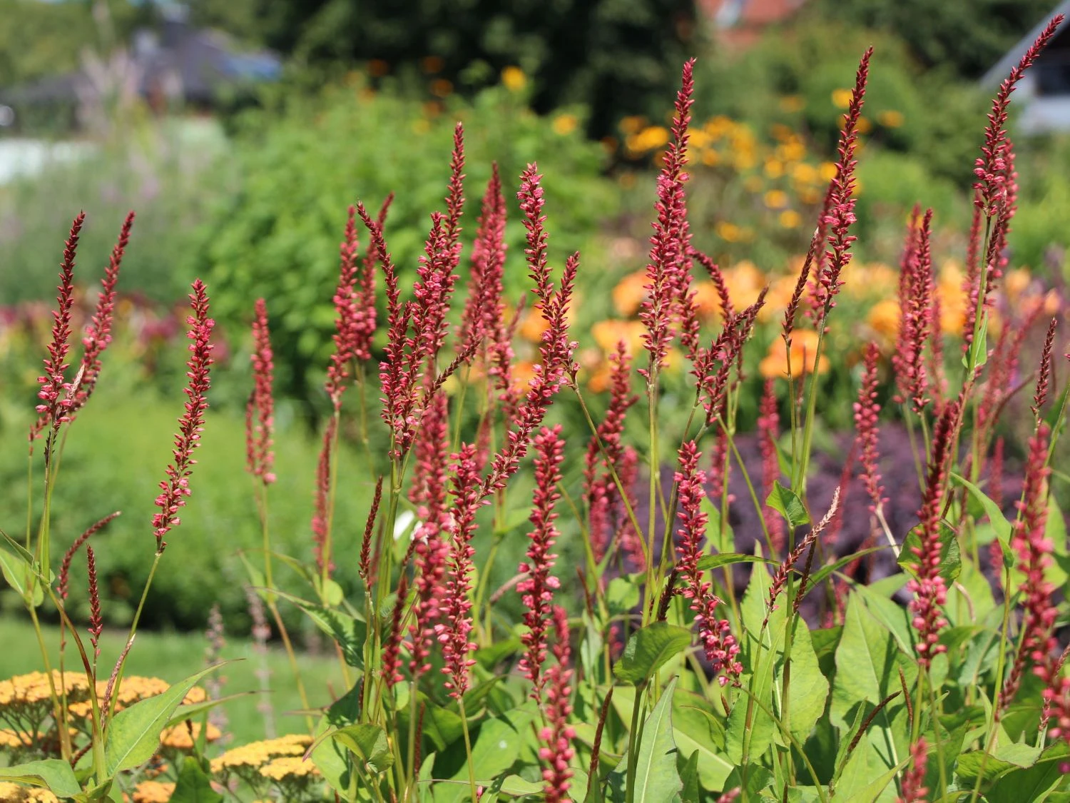 Ein pflegeleichter und anspruchsloser Gartenschatz. Diese vielseitige Gartenstaude erträgt tiefe Minustemperaturen unbeschadet. Der Kerzenknöterich ‚Orangofield‘ (bot. Bistorta amplexicaulis ‚Orangofield‘) ist eine stark wachsende, horstbildende Staude, die mit ihrer ungewöhnlichen Blütenfarbe die Blicke auf sich zieht. Das leuchtende Orange-rosa leuchtet nach Lichteinfall mehr oder weniger auffallend orange. Zu bewundern ist dieses umwerfende Farbenspiel von Juli bis Oktober. Der Kerzenknöterich ‚Orangofield‘ liebt Vollsonne bis Halbschatten auf einem frischen Boden. Auch eine zeitweilige Trockenheit verträgt er. Die einfachen Blüten sind filigran an der dichten Blütenähre aneinandergereiht. Eine lieblich duftende Blütenwolke, die wie Schaum über die Beete tanzt.
