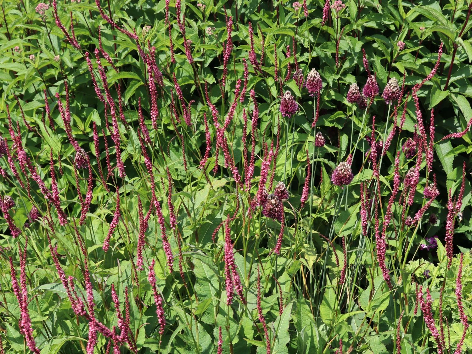 Eine kräftig wachsende Pflanze mit auffallenden, dunkelrosa gefärbten Kerzen. Der Kerzenknöterich ‚Seven Oaks Village‘ (bot. Bistorta amplexicaulis ‚Seven Oaks Village‘) ist eine robuste und attraktive Gartenstaude. Das Wuchsverhalten der Pflanze ist rhizombildend und die Wuchsform ist aufrecht bis bogig geneigt. Die Blätter besitzen eine zugespitzte sowie breite, lanzettliche Form und strahlen in einem sommerlichen Grün. Sein dichtes Blattwerk erscheint früh. Die Blütenfarbe des Bistorta amplexicaulis ‚Seven Oaks Village‘ besticht in der Blütezeit von Juli bis Oktober in einem kräftigen Dunkelrosa. Die Form der Blüte ist kornröhrig, klein und unscheinbar. Es sind einfache Einzelblüten in einem ährigen Blütenstand, welche einen dezenten Duft verströmen.