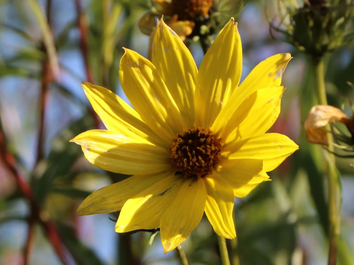 Die Klafterlange Sonnenblume ist eine Pflanzenart in der Gattung der Sonnenblumen (Helianthus) innerhalb der Familie der Korbblütler (Asteraceae). (Bot.) Helianthus orgyalis fällt nicht nur aufgrund ihrer herrlichen, leuchtend gelben Blüten auf, sondern auch wegen ihres hohen Wuchses. Die Klafterlange Sonnenblume ist vielfach auch als Weidblättrige Sonnenblume bekannt. Sie erreicht mühelos eine Höhe von bis zu 250 Zentimeter. Dafür muss sie sich nicht groß anstrengen. An manchen Standorten erreicht sie unter guten Bedingungen sogar bis zu 3 m Höhe. Damit ist sie für jedermann sofort zu sehen und fällt auf. Die Blütezeit der Klafterlange Sonnenblume beginnt im September. Sehr zur Freude des Gärtners, dauert die Blühphase bis in den Herbst hinein. Bis weit in den Oktober zeigt sich die unvergleichliche Blütenpracht. Die tollen gelben Blüten sorgen für gute Stimmung und heben auch bei schlechtem Wetter und regnerischen Tagen die Laune.