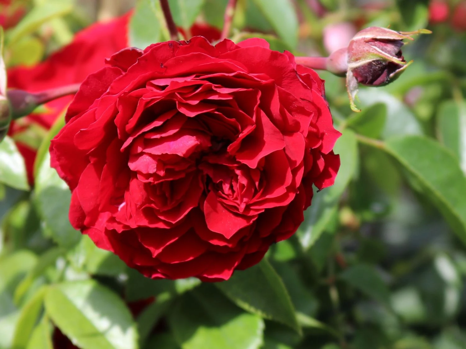 Die Kletterrose ‚Belkanto‘ ® zeigt ihre wunderschöne, samtrote Blütenpracht besonders lange. Von Juni bis zum ersten Frost erfreut Rosa ‚Belkanto‘ ® mit ihren farbintensiven, stark gefüllten Blüten. Sie präsentiert ihre Blüten in dichten Dolden, die einzelnen Blüten weisen eine sehr edle, relativ breite Form auf. Die mittelgroßen Blüten erreichen einen Durchmesser von 8 – 10 cm, sie zeichnen sich außerdem durch ihre sehr gute Farbbeständigkeit aus. Das dunkelgrüne, lanzettlich geformte Laub setzt dabei einen intensiven Farbkontrast, der den Blick schon aus der Ferne auf die Kletterrose ‚Belkanto‘ ® zieht. Nach der Blüte bildet sie einen Fruchtschmuck aus essbaren, süßlichen Hagebutten in einem satten, leuchtenden Orangerot.