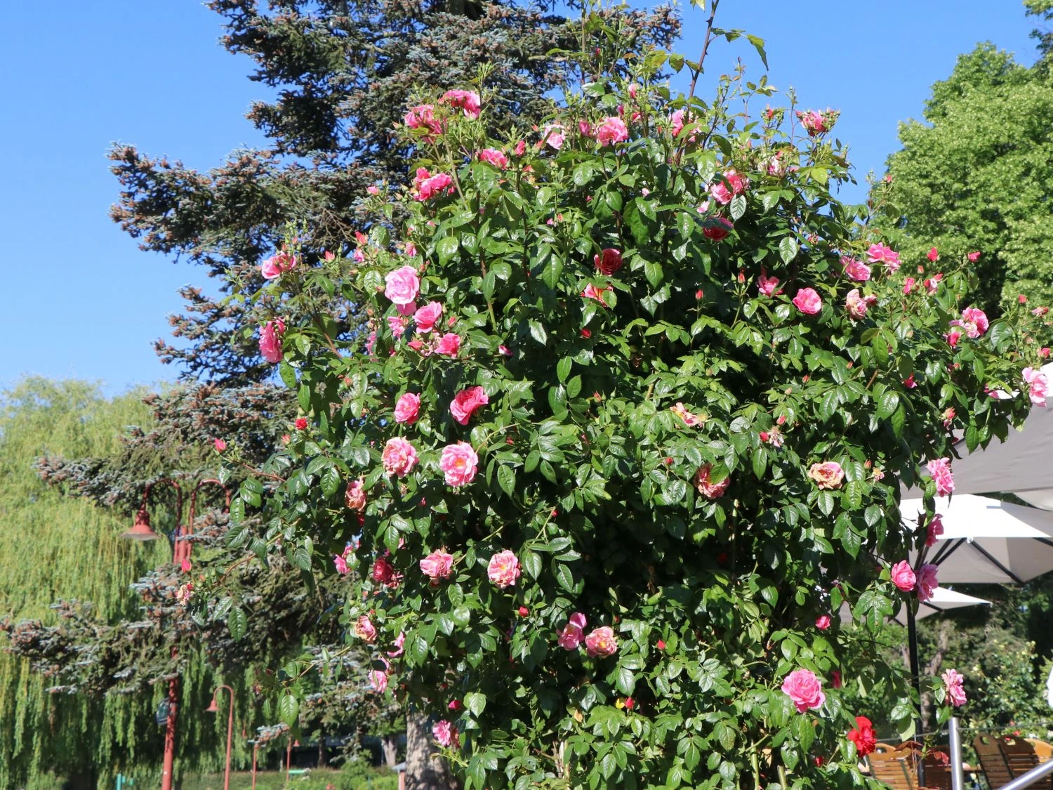 ‚Camelot‘ ® erfreut sich einer besonders guten Blattgesundheit und zeigt sich gegenüber Sternruß- und Mehltau als enorm widerstandsfähig. Da diese frohwüchsige Sorte ständig neue Bodentriebe entwickelt, die nicht zu stark werden, können sie optimal an Spalieren oder anderen Rankhilfen gezogen werden. Dies ist auch das Geheimnis der lange Blütezeit, denn die Kletterrose ‚Camelot‘ gilt als öfterblühend.