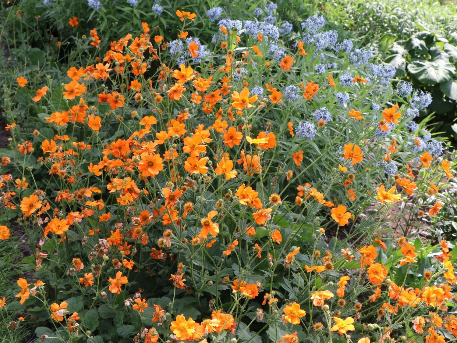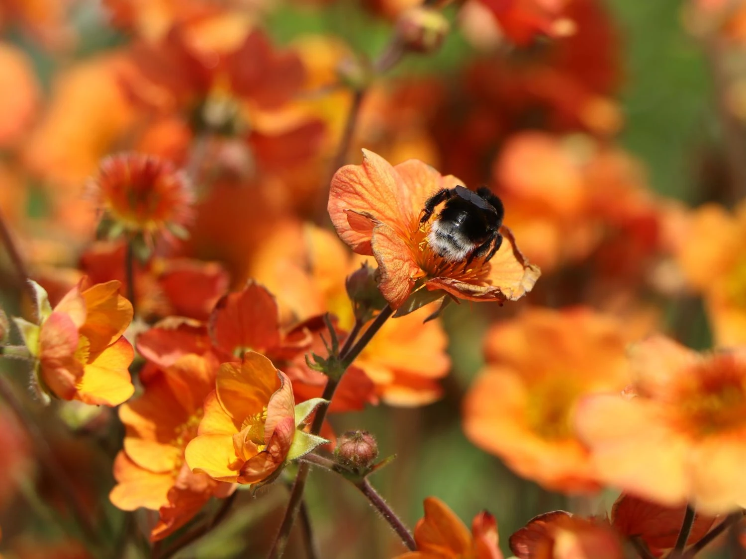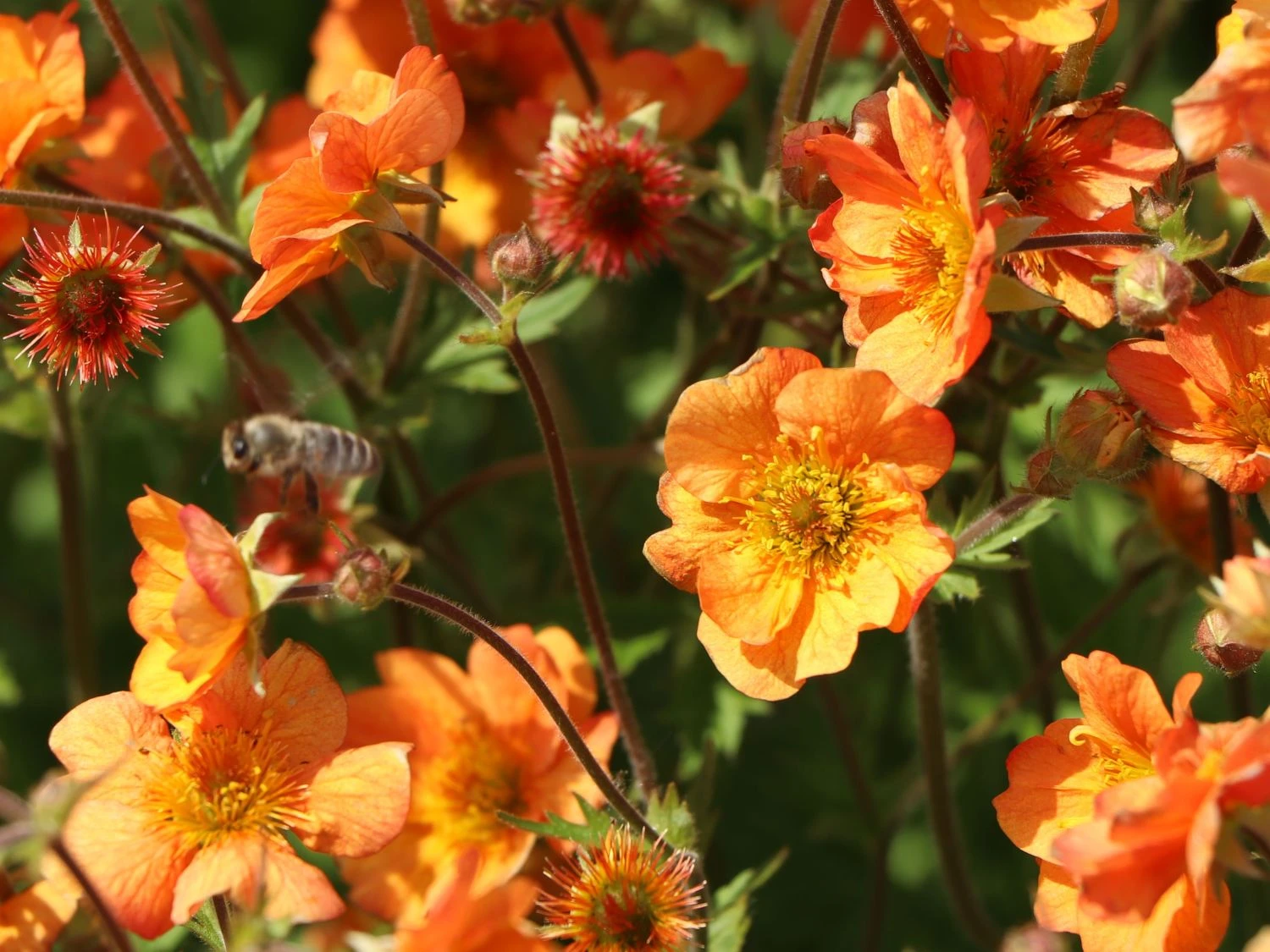 Mit dieser Pflanze zieht jetzt eine ganz besonders intensive Leuchtkraft mit Fernwirkung in den Garten ein. Die Rede ist von dem Geum chiloense ‚Prinses Juliana‘, wie diese Nelkenwurz-Sorte botanisch genannt wird. Leuchtend und auffallend orangegelb stechen die großen Blüten der Staude jedem Gartenbesucher sofort ins Auge. Einfach ein Anziehungspunkt, an dem kein Blick einfach vorbeizieht.