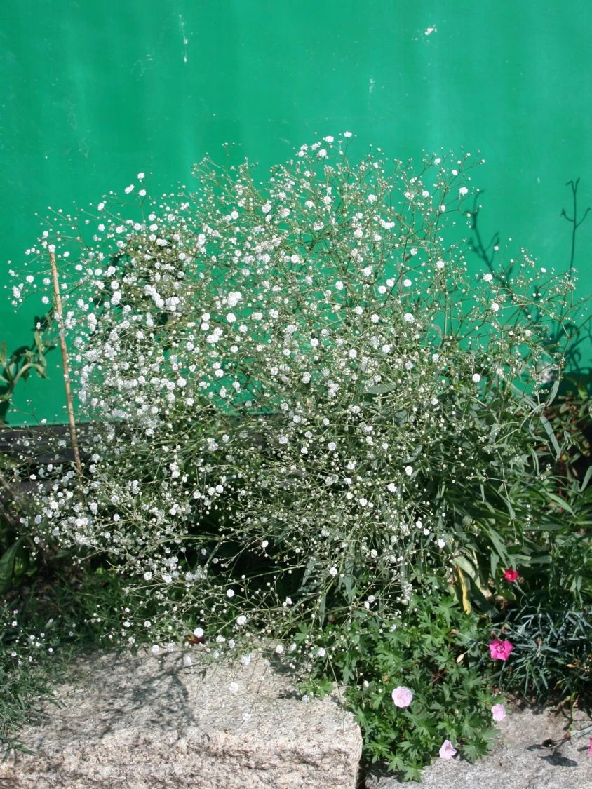 Für Blumen und farbig blühende Stauden empfiehlt sich die Pflanze als kontrastreiche, ideale Begleiterin. Auch als Schnittpflanze eignet sie sich außergewöhnlich gut. Das Rispige Gipskraut passt in elegante Sträuße wie in ruppig bunte Sommergebinde oder Trockensträuße. Das Gefülltblühende Schleierkraut ‚Bristol Fairy‘ benötigt einen sonnigen Standort. Die Gypsophila paniculata ‚Bristol Fairy‘ deckt ihren Bedarf an Wasser aus der normalen Regenmenge. In lang anhaltenden, trockenen Perioden empfiehlt sich eine zusätzliche mäßige Wassergabe. Einen Schnitt verträgt die (bot.) Gypsophila paniculata ‚Bristol Fairy‘ nach der ersten Blüte. Setzt der Gartenfreund zu diesem Zeitpunkt den Rückschnitt bis knapp über dem Laub an, bleibt die Staude bis in den Spätherbst attraktiv. Über den Winter kommt das Gefülltblühende Schleierkraut ‚Bristol Fairy‘ ohne große Schwierigkeiten. Lediglich ein Schutz vor Winternässe ist ratsam. Im folgenden Frühjahr arbeitet der Gärtner Kompost und Erde ein. Im Frühjahr treibt die Staude erneut kräftig aus und schmückt sich mit unzähligen Blüten.