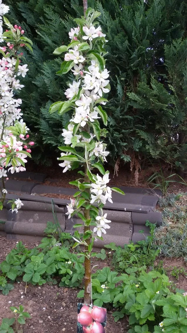 Der Säulenapfel Ballerina ‚Polka‘ ® bringt wohlschmeckende mittelgroße Äpfel hervor. Die zuerst grünlichen Früchte nehmen mit zunehmender Reife eine kräftige rote Farbe an. Das Fruchtfleisch ist saftig und knackig. Frisch verzehrte Früchte sind ein Genuss. Als Kuchenapfel begeistert er in einem köstlichen Apfelstrudel oder Apfelkuchen. Die Erntezeit für den (bot.) Malus Ballerina ‚Polka‘ ® beginnt im September und endet im Oktober. Nach Lust und Laune einen Apfel frisch vom Baum genossen und die übrigen sammeln weiteres Aroma. Ein Säulenapfel ist das perfekte Mittel, auf kleinstem Raum an gärtnerischen Obstfreuden teilzuhaben. Nichts ist schöner, als das eigene Obst vom Baum zu ernten. Mit seinem kompakten, 50 Zentimeter breiten Wuchs lässt sich der Säulenapfel Ballerina ‚Polka‘ ® problemlos in einem großen Kübel kultivieren. Er findet auf kleinsten Balkonen einen Platz. In einem Garten lassen sich aus verschiedene Säulenobstsorten eine platzsparende Hecke zusammenstellen. Der Pflegeaufwand ist gering. Die Bäume wachsen bis zu einer Höhe von 300 Zentimetern. Die Apfelernte gestaltet sich kinderleicht, denn alle Äpfel hängen in Greifhöhe.