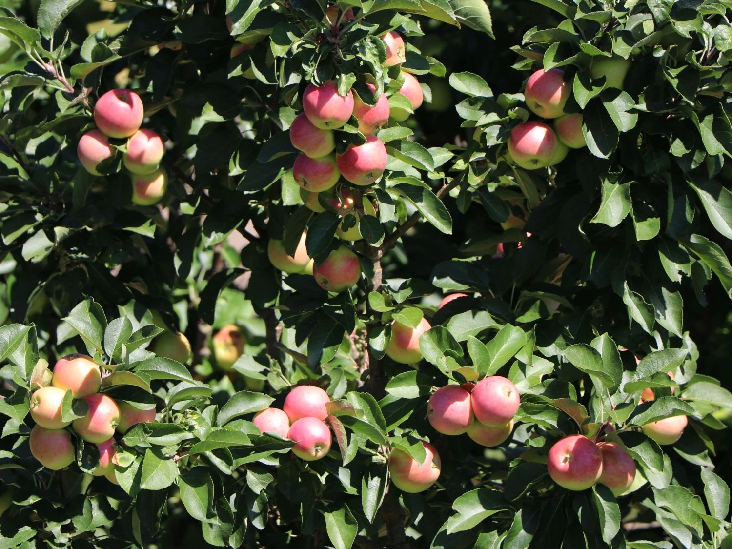 Der Säulenapfel Ballerina ‚Polka‘ ® benötigt für eine reiche Ernte eine andere Befruchtersorte in der Nähe. Hier haben sich die Sorten ‚Granny Smith‘ oder der Säulenapfel ‚Walzer‘ bewährt. Während des Sommers reifen die Äpfel zwischen dem dichten, grünen Laub. An einem sonnigen Standort fühlt sich der Malus Ballerina ‚Polka‘ ® wohl. Auf durchlässigen, humosen Substrat bleibt der Apfelbaum gesund und widerstandsfähig gegen die gefürchteten Apfelbaumschäden. Gerade für Pflanzen in einer Topfkultur sind ausreichende Wassergaben lebensnotwendig. Niemals darf Staunässe entstehen. Zu viel Wasser lässt die empfindlichen Wurzeln faulen. Der Pflegeaufwand für den Säulenapfel Ballerina ‚Polka‘ ® ist gering. Die zertifiziert virusfreien Apfelbäume benötigen in den ersten Jahren keinen aufwendigen Schnitt. In den Sommermonaten begünstigen eine zweiwöchige Düngergabe im Gießwasser das Apfelwachstum. Das Obstgehölz erhält gleichzeitig genug Nährstoffe für einen regelmäßigen Ertrag.