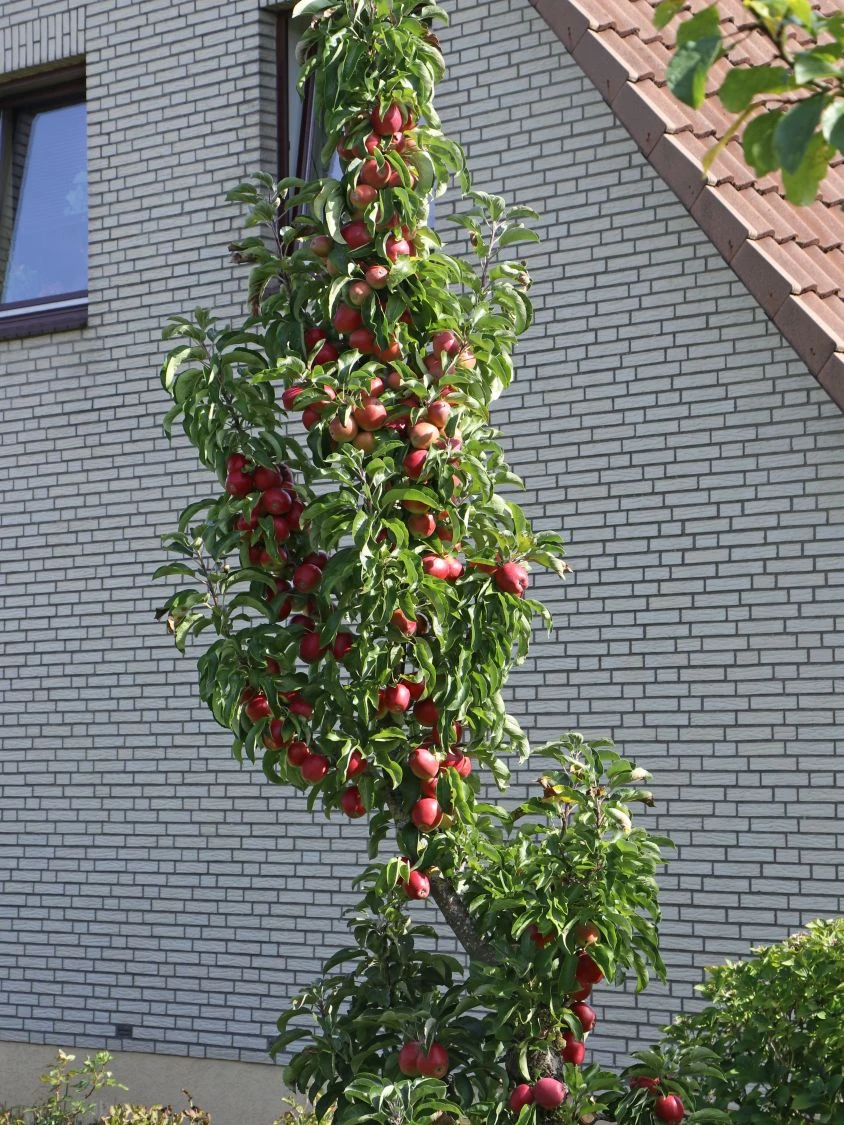 Der Säulenapfel ‚Rhapsodie‘ ist für Garten-Anfänger bestens geeignet. Denn die Sorte ist widerstandsfähig gegen Schorf. Das erspart den Einsatz von Pflanzenschutzmitteln und einem ungetrübten Genuss der Äpfel steht nichts im Wege. Auch gegenüber Mehltau sind die Blätter von Malus ‚Rhapsodie‘ nicht anfällig. Diese Sorte ist bis zu rund -29 °C winterhart und überwintert problemlos im Freien. Bei Exemplaren im Kübel, umwickelt der Gärtner den Wurzelbereich mit Vlies und schützt den Ballen so vor Schäden durch Frost. Durch die extrem schlanke und säulenförmige Wuchsform ist ein Rückschnitt bei dieser Apfelsorte nicht nötig. Das Gehölz greift auch sich selbst überlassen wenig Raum und eignet sich für ein perfektes Obsterlebnis auf der Terrasse und dem Balkon. Bei Exemplaren im Kübel achtet der Pflanzenfreund darauf, dass die Wurzeln gut mit Wasser versorgt sind. Das ist bei warmen Wetterlagen wichtig und beeinflusst die Entwicklung der Früchte positiv. Ein kalium-betonter Dünger sorgt dafür, dass die Triebe des zierlichen Gehölzes gut aushärten und das Gewicht der Äpfel tragen. Einen Volldünger, der auch Stickstoff enthält, verabreicht der Gärtner letztmalig im Juli. Sonst konzentriert sich die Pflanze weiterhin auf das Wachstum und nicht auf das Vorbereiten der Winterruhe.