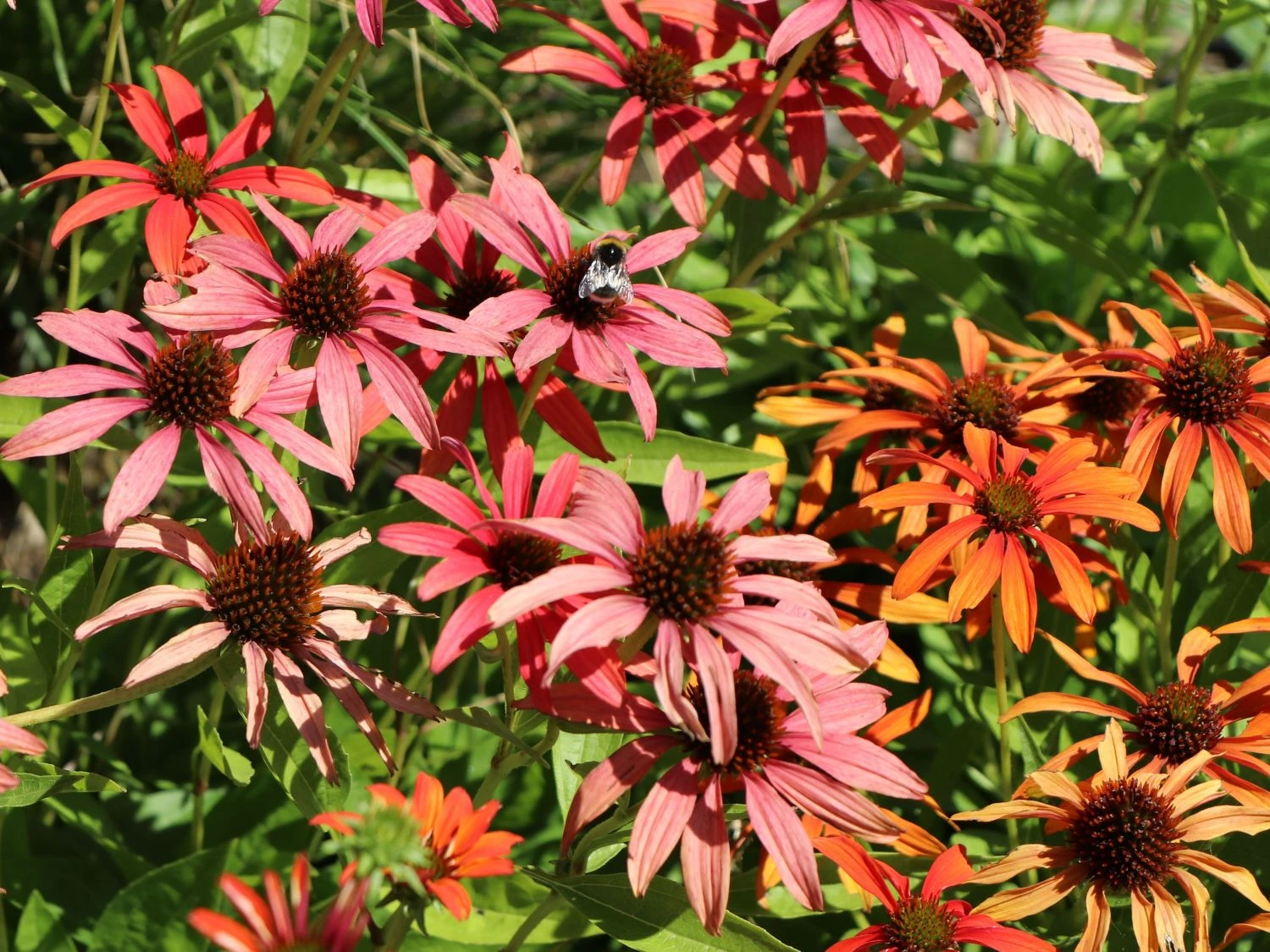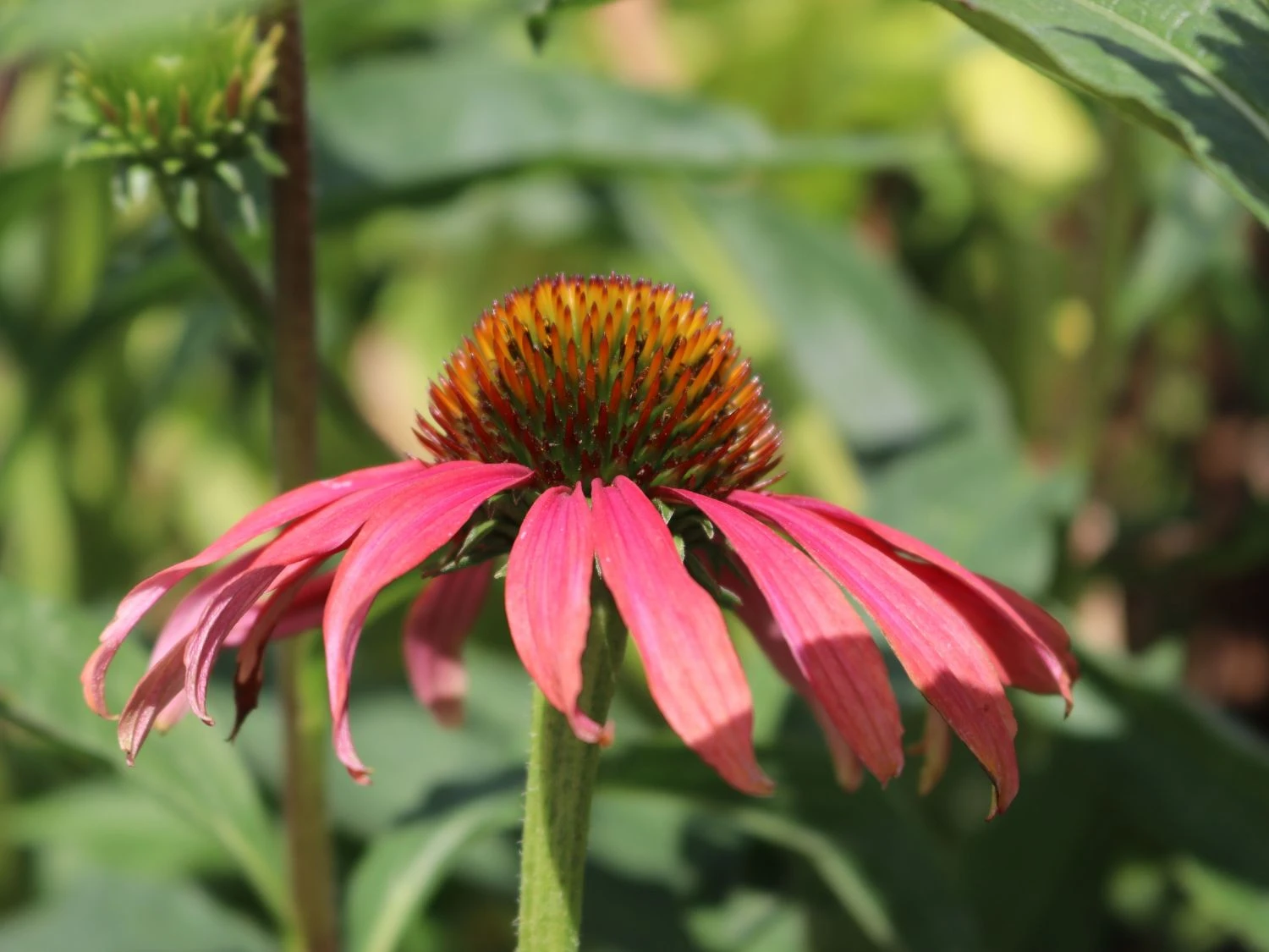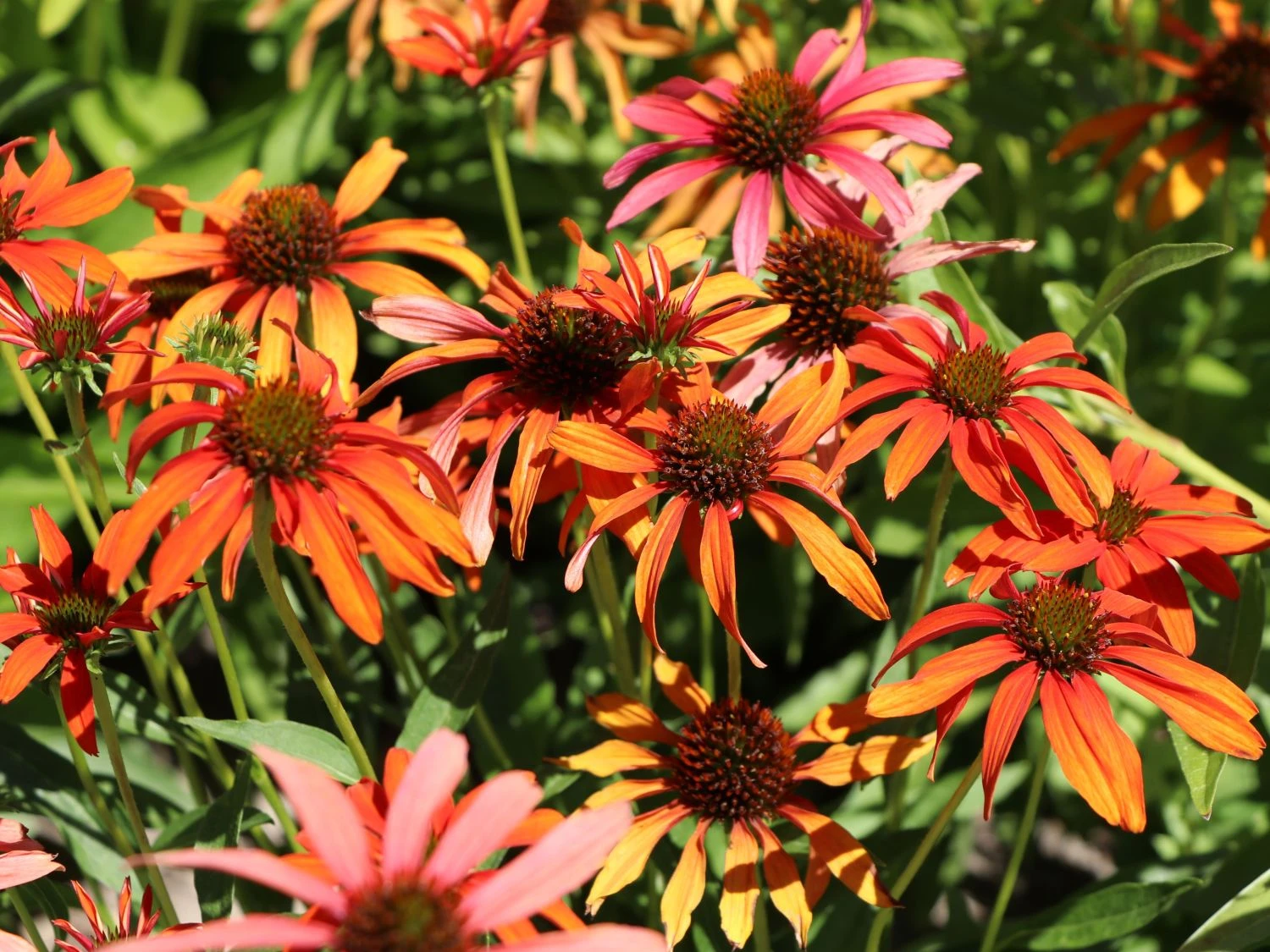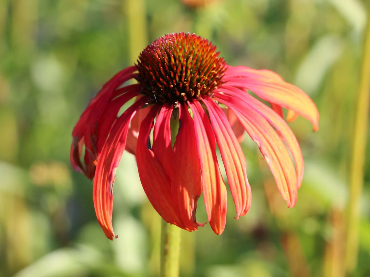 Der Scheinsonnenhut ‚Tomato Soup‘ ®, in der Fachsprache auch Echinacea purpurea ‚Tomato Soup‘ ® genannt, beeindruckt mit einer besonderen Farbvariante seiner Blüte, die seinem Namen alle Ehre macht, und ist vielseitig einsetzbar. Mit seinem straffen, aufrechten und horstbildenden Wuchs erreicht diese Gartenpflanze eine schöne Größe von bis zu 80 cm, wodurch er auch in vielen Gartenbereichen bepflanzt werden kann. Denn dadurch macht diese Staude nicht nur im mittleren Bereich des Beetes eine gute Figur, sondern auch im gesamten Beet.