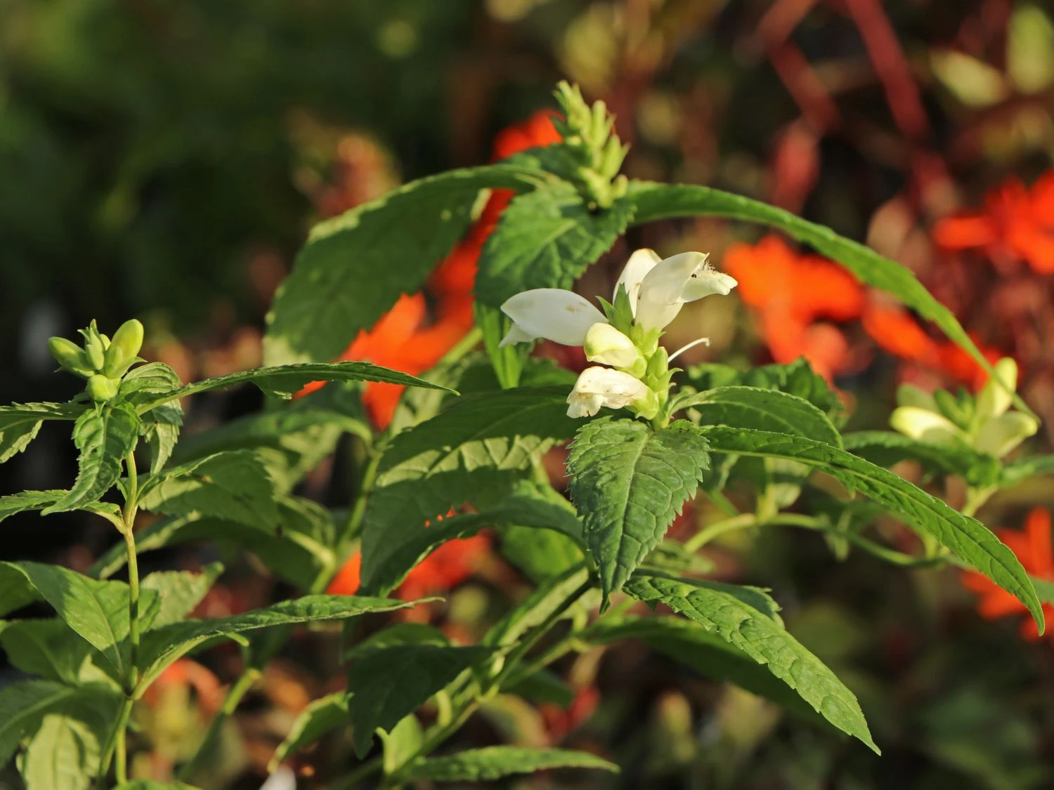 Charakteristisch für den Schlangenkopf ‚Alba‘ ist ein ährenförmiger Blütenstand mit einfachen Blüten. Ab Ende Juli bzw. Anfang August beginnt diese Staude damit ihre weißen und rachenförmigen bis schlangenkopfartigen Blüten zu entfalten. Bei passender Sonneneinstrahlung kann man beobachten, wie die weißen Blüten manchmal in einem hauchzartem Rosa schimmern. Die zauberhaften Blüten sind ein magischer Anziehungspunkt für Schmetterlinge und bis in den Oktober hinein ragen die stolzen und hübschen Blütenköpfe in die Höhe.