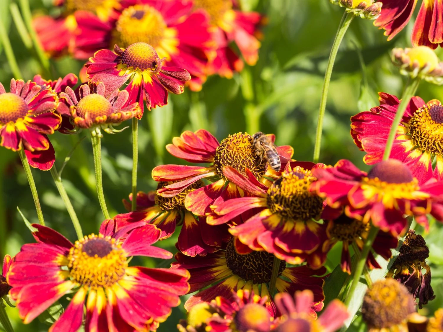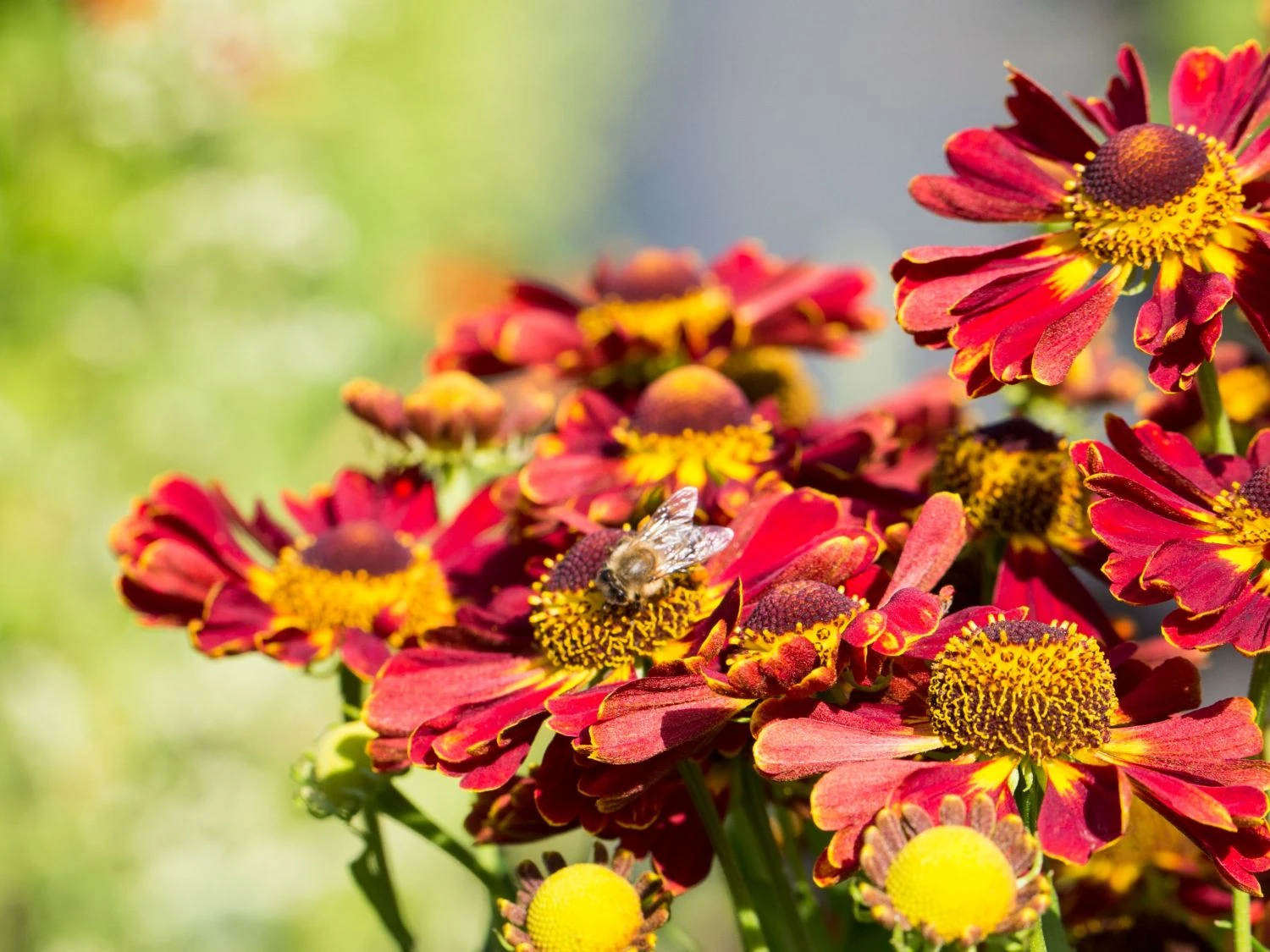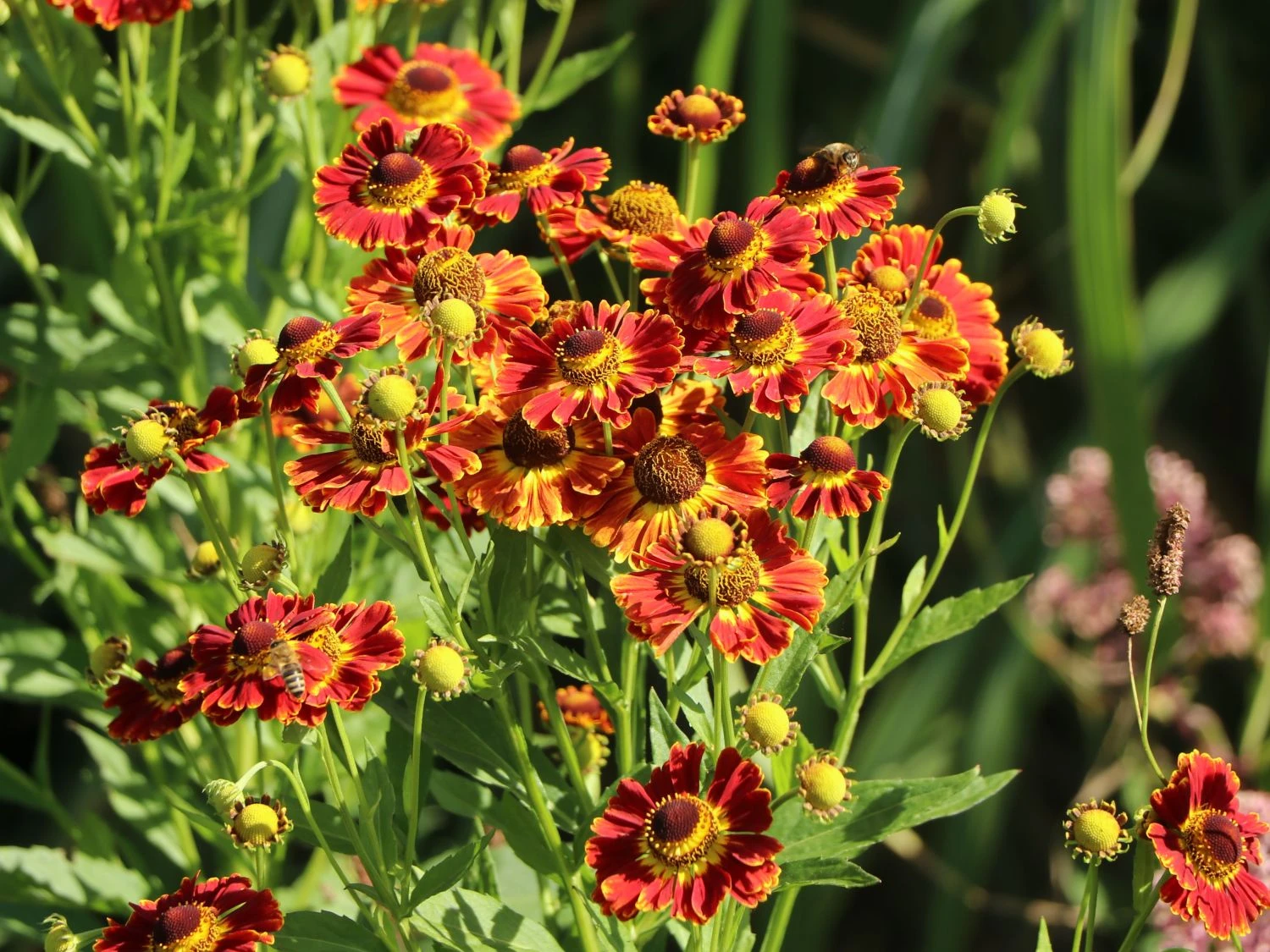 Sonnenbraut ‚Königstiger‘ wie am Namen schon zu erkennen ist, besticht Sie wie ein Tiger durch ihre prächtige Farbgebung. Grundsätzlich sind die Farben der Blüte goldgelb mit braunem Rand. Abhängig von der Jahreszeit variieren diese. Ein wunderschönes Naturschauspiel. Die Staude eignet sich hervorragend für den Blumenschnitt. In den Sommermonaten Juli bis September ist ihre Blütezeit. In diesen 3 Monaten zeigt sich die beliebte Schnittblume von ihrer besten Seite. Im Beet lässt Sie sich bei sonniger Lage ausgezeichnet mit anderen Blumensorten wie zum Beispiel Boltonia, Monrada usw. kombinieren. Auch auf Terrassen zieht die Sonnenbraut Königstiger mit ihren leuchtenden Farben, die gesamte Aufmerksamkeit auf sich. Bei einer maximalen Höhe von 1,2 Metern ist diese Pflanze selbst von großen Entfernungen leicht zu erkennen.
