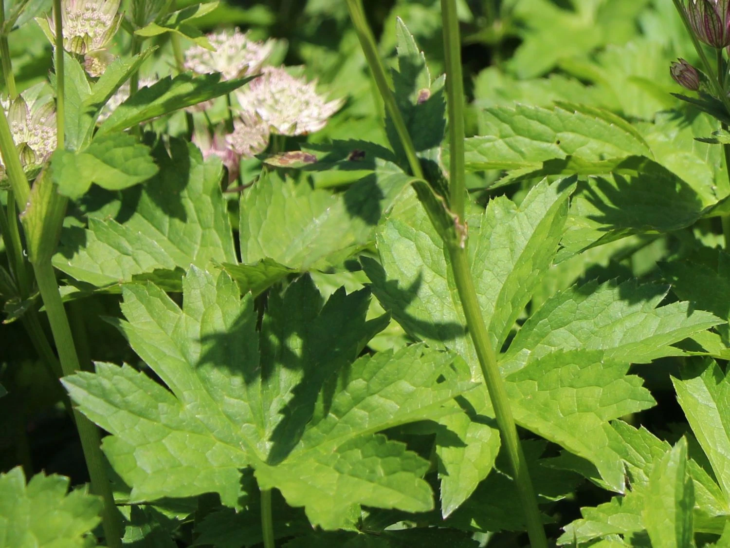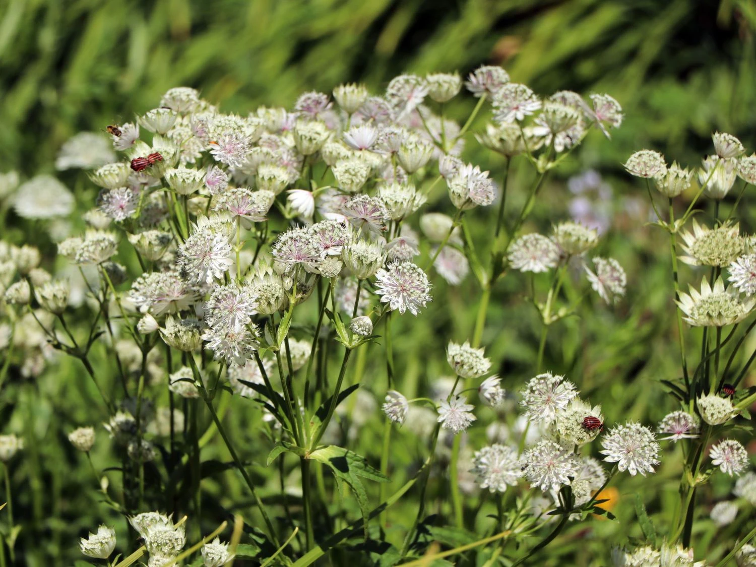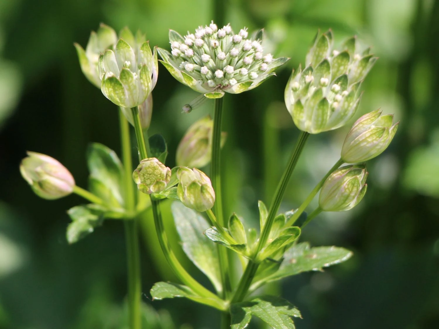 Die hohen, aufrechten Stängel erinnern bereits an heraufragende Türme, was auch nicht ganz falsch ist, denn diese Staude wächst und gedeiht in nahezu ganz Europa, und das auch in Bergregionen von bis zu 2000 Metern Höhe. An einen Turm erinnert auch der Stängel: Senkrecht emporsteigend besitzt er nur wenige Blätter, und die oben aufgesetzten Blüten wirken wie viele kleine helle Turmspitzen. Der Stängel ist wie für eine Staude typisch eher krautig als holzig oder grasähnlich. Die schlichte Schönheit dieser Blume brachte sie dann aus den Bergen der Alpen in die Gärten vieler Menschen. Dort gedeiht die Große Sternendolde zumeist in Blumenbeeten oder in Staudenkästen. Ein Trumpf der Astrantia major ‚Star of Royals‘ ®: Sie ist vor Schnecken befreit.