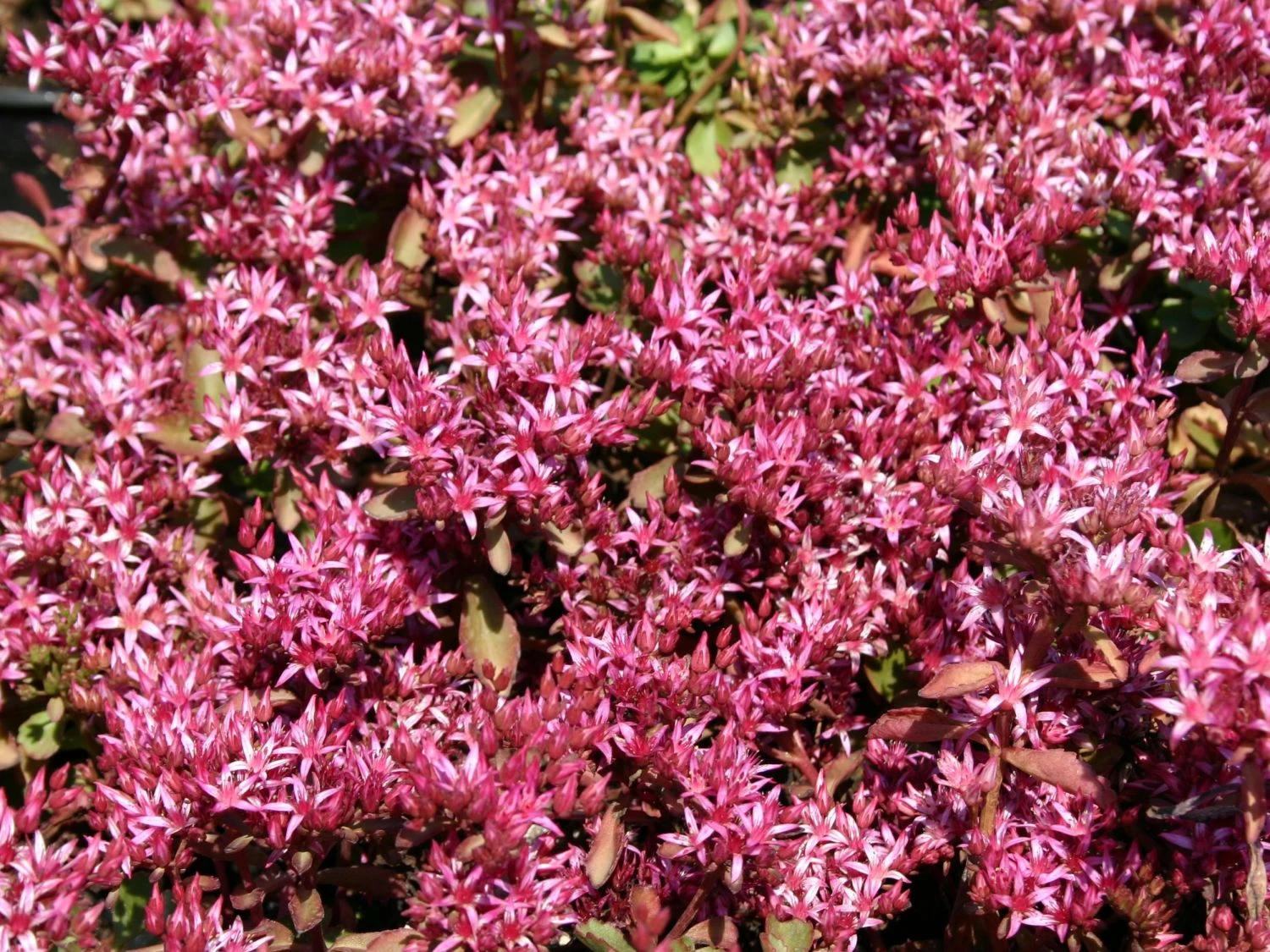 Die doldenförmigen, leuchtenden Blüten des Teppich Fettblatts ‚Fuldaglut‘ stellen im Garten die einen wunderschönen Anblick dar. Auch im Kübel auf der Terrasse begeistert dieser schöne Anblick. Auch Gärtnern mit wenig Zeit für eine aufwendige Pflege des Gartens, bereitet (bot.) Sedum spurium ‚Fuldaglut‘ viel Freude.