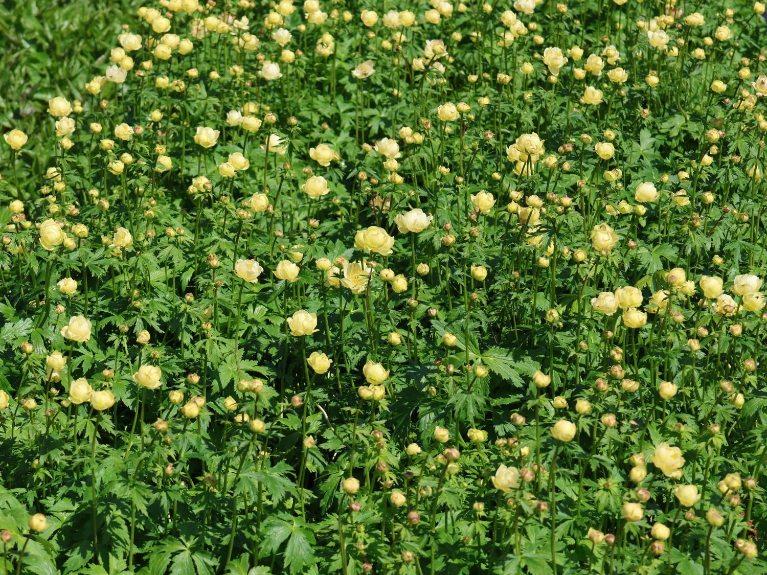 Die Trollblume ‚Cheddar‘ setzt wunderschöne mondgelbe Lichtpunkte vor dunkellaubige Gehölze. Nicht nur ihre Farbe auch die stilvolle halbkugelige Form ihrer Blüten macht sie zu einer unverzichtbaren Blütenstaude im Garten. In doppelter Reihe umschließen die Kelchblätter eine zartgelbe Mitte. Die Kugelblüten erreichen einen Durchmesser von rund 4 cm. Der Reiz dieser Staude geht von den Kugelblüten aus, die auf langen Stängeln den Laubbereich weit überragen. Jedes Grundblatt von (bot.) Trollius x cultorum ‚Cheddar‘ ist tief handförmig geteilt. An den langen Stielen wachsen in den Knotenpunkten zusätzlich filigrane Stängelblätter. Mit einer Höhe von insgesamt 60 cm gehört die Trollblume ‚Cheddar‘ zu den mittelgroßen Stauden. Ihre Blütezeit von Mai bis Juli ist länger als die anderer Sorten. Für optimales Wachstum benötigt sie einen humosen Untergrund und ein feuchtes Umfeld. Am Rand eines Gartenteiches, in der Nähe eines Bachlaufes oder in einem feuchten Beet lassen sich natürliche Situationen herstellen. Diese elegante Staude wirkt am besten, wenn sich ihre Blütenköpfe über dem Grün der Pflanzpartner erheben. An einem sonnigen Gehölzrand entstehen mit kleinen Gruppen von drei bis sieben Pflanzen schmückend Gartenszenen.