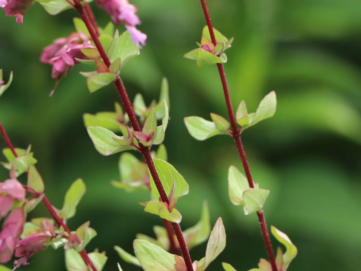 Origanum amanum ‚Bristol Cross‘ wächst aufrecht und bildet schnell Verästelungen aus. Insgesamt erreicht diese Staude eine Höhe von bis zu 20 cm. An den schlanken Stängeln sitzen in gegenständiger Anordnung kleine, etwa 10 – 15 mm lange, herzförmige Blätter, die in einem Silbergrau gehalten sind – diese zeigen sich zu jeder Jahreszeit, sind sie doch immergrün. Ab Juni beginnt die ersehnte Blütezeit dieser Gartenpflanze. Bis in den August hinein zeigen sich nun zart violett bis magentafarbene Blüten, die von grün-rosafarbenen Deckblättern umgeben sind. Das besondere an diesen Blüten ist ihre Form. Sie erinnert an die Blütenform des Hopfens, nur das sie sehr viel länger und ballenartiger sind.