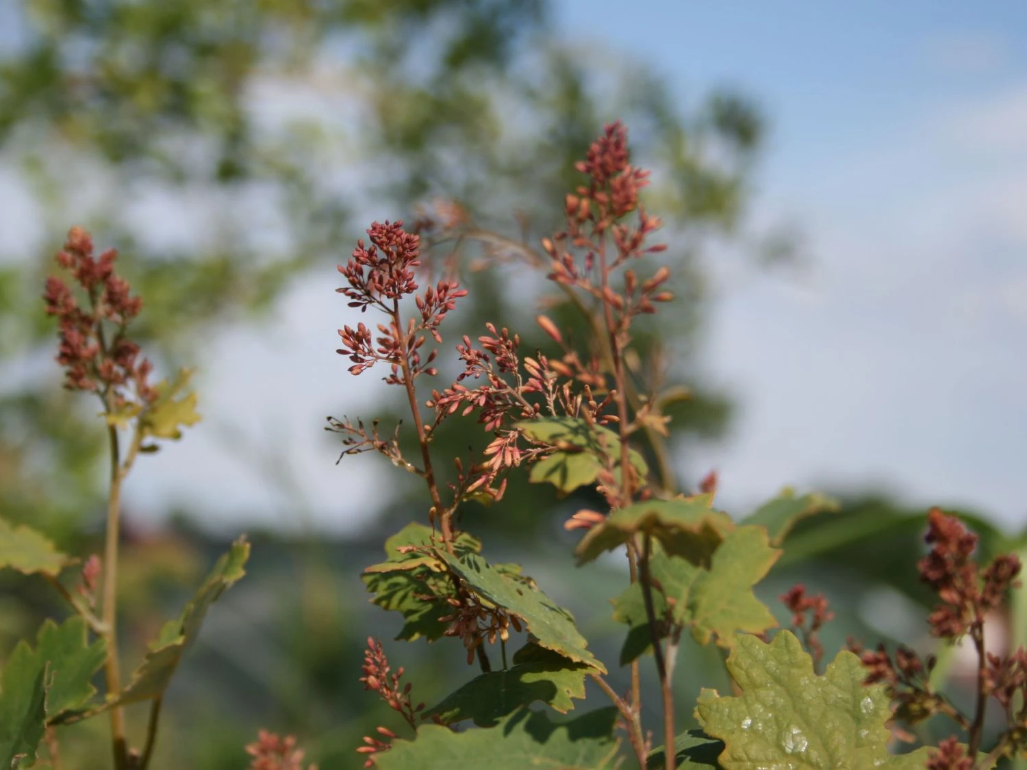 Die Blüten des Federmohns sitzen von Juli bis August eher unscheinbar in Rispen zusammen.