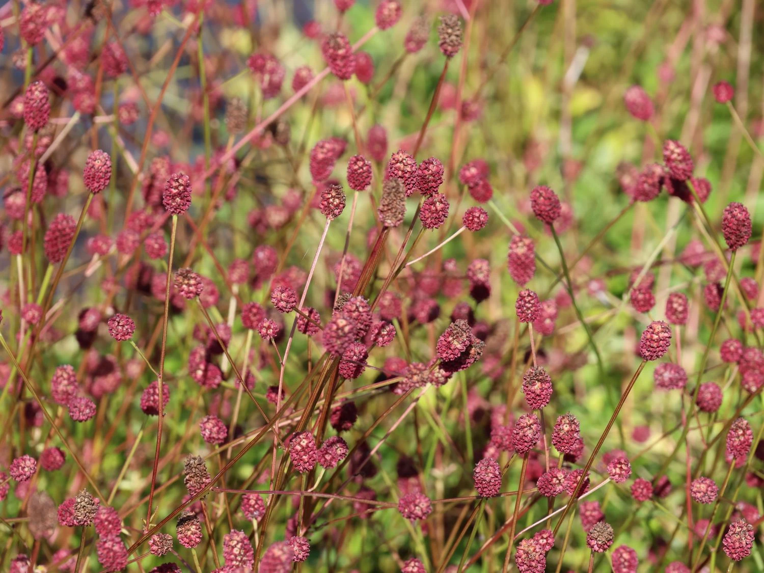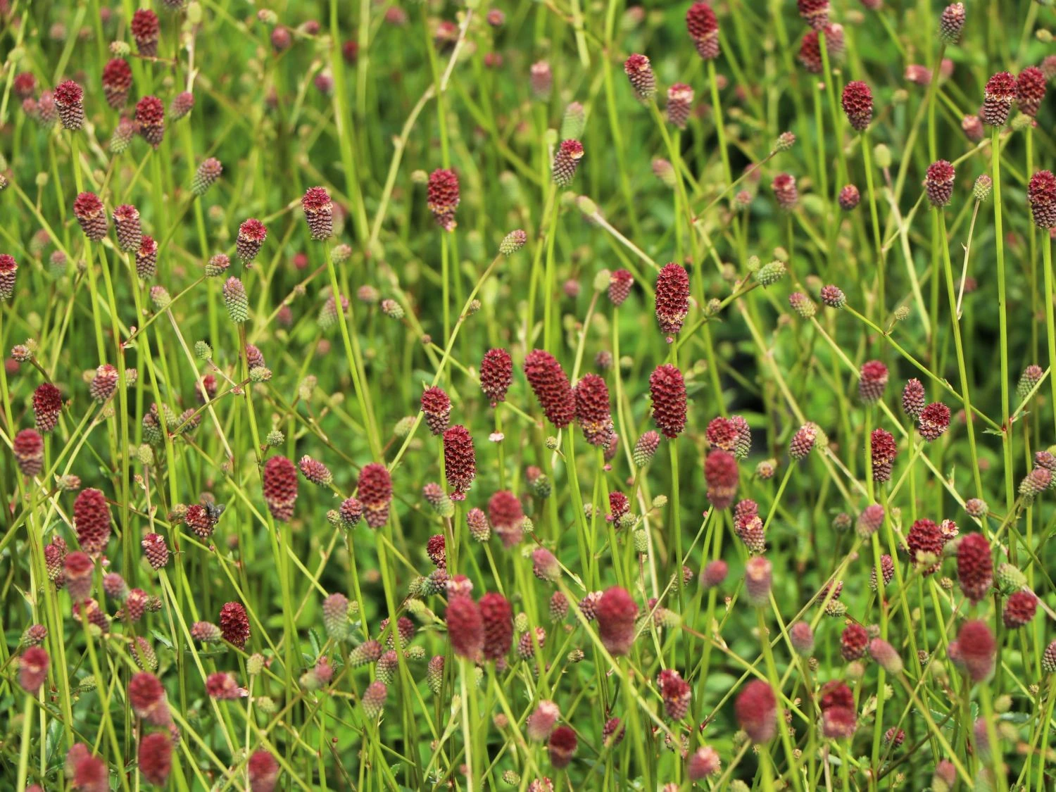 Der Wiesenknopf ‚Tanna‘ ist anspruchslos und schmückt den Garten mit schönen Blüten in kräftigem Rotbraun. Sie sind walzenförmig und stehen jeweils an einem dünnen Stängel über den Blättern der Pflanze. Wie hingetupft wirken die Blütenköpfe und verleihen (bot.) Sanguisorba officinalis ‚Tanna‘ einen verspielten Charme. Die Staude, vielen als Großer Wiesenknopf bekannt, sieht in einem Beet hinreißend aus und wirkt auch im Kübel wunderschön. Die Blütenstände sind zierliche Schnittblumen, die einem sommerlichen Strauß zu Leichtigkeit verhelfen. Besonders in kleinen Gruppen überzeugen mehrere Pflanzen dieser Sorte als Blickfang auf einer Freifläche.