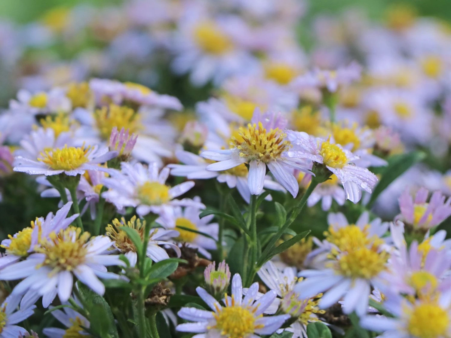 Die Wild-Aster ‚Stardust‘ ® hebt sich ihre traumhafte Blütenpracht für den Spätsommer und Herbst auf. Noch im Oktober erscheinen ihre feinstrahligen Blüten in reicher Anzahl und bieten sich Insekten als späte Nahrungsquelle an. Völlig zu Recht ist (bot.) Aster ageratoides ‚Stardust‘ ® der Star im Herbstbeet. Viele strahlenförmige Blüten zieren ihre Stängel und überziehen die Wild-Aster ‚Stardust‘ ® mit einem zarten, hellvioletten Schleier. Mit ihrem flächigen Wuchs entwickelt die Aster kissenähnliche Horste von maximal 40 cm Wuchshöhe. Die Wildaster verbindet dadurch wunderbar den Rand einer dicht bepflanzten Rabatte mit dem angrenzenden Rasen. In sonnigen Beeten entfaltet sich die Wild-Aster ‚Stardust‘ ® zwischen grünen Bodendeckern zu blühenden Inseln. Richtig strahlend wirkt die blühende Pflanze auf einer offenen Fläche, umgeben von verschiedenen, halbhohen Ziergräsern.