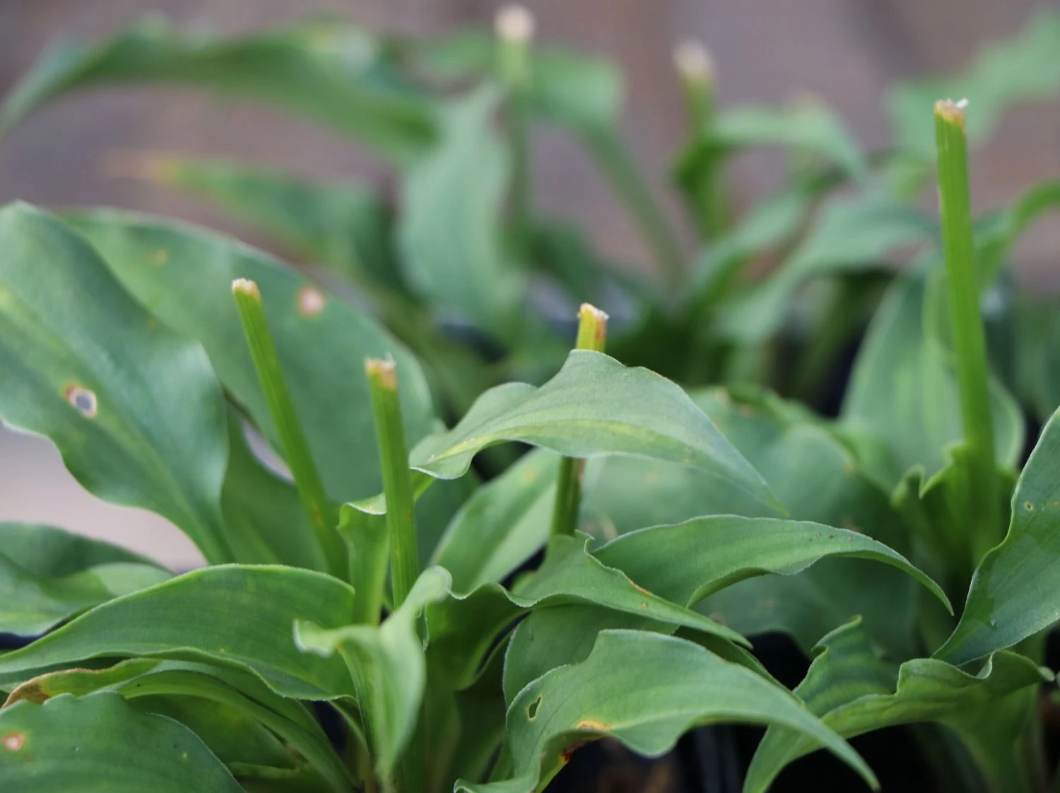 Die Zwergige Funkie ist eine wunderschöne Blattschmuckpflanze für den Schattengarten. Die sommergrüne (bot.) Hosta minor gehört mit einer maximalen Wuchshöhe von rund 30 Zentimetern und einer Breite von 20 bis 30 Zentimetern zu den kleineren Hosta-Sorten. Sie wirkt mit ihren schmalen Blättern zart und anmutig. Die Blätter sind einfarbig dunkelgrün. Sie stehen an länglichen grünen Stielen. Die Blätter sind herzförmig und langgestreckt. Ihr Rand ist leicht gewellt, vorn sind sind sie zugespitzt. Diese aparte Staude stammt ursprünglich aus Ostasien und ist erstmals im Jahr 1911 in Japan und Korea als Schmuckpflanze für den Garten belegt. Typisch ist der kleine Blatthorst dieser Hosta-Sorte. Damit erweist sich die Zwergige Funkie als vielseitig verwendbar. Sie schmückt Beete, Rabatten oder den Steingarten. Auch als Kübelpflanze auf Balkon oder Terrasse macht diese Hosta eine gute Figur, ohne sich in den Vordergrund zu stellen. Die asiatische Staude fügt sich wunderbar in den kleinen Stadtgarten ein, in Bauern- oder naturnahe Gärten oder Vorgärten und ergänzt perfekt asiatische inspirierte Gartenanlagen. Hosta minor ist eine Pflanzenart aus der Gattung der Funkien (Hosta), innerhalb der Familie der Spargelgewächse (Asparagaceae).
