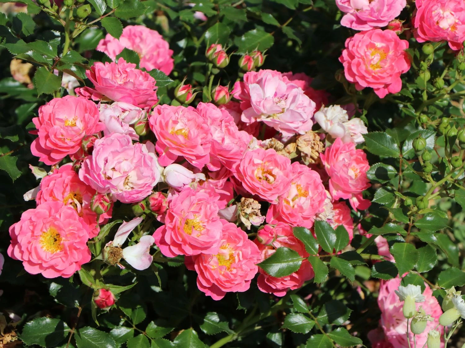 In einem Pflanzgefäß brilliert die Zwergrose ‚Charmant‘ ® zugleich mit ihrem üppigen Blütenflor und ihrer wohlproportionierten Gestalt. Im Vordergrund eines Beetes beeindruckt vor allem die Pracht der gefüllten Blüten. Spielend lassen sich mit der dicht belaubten Pflanze freie Flächen in einem Beet bedecken. Am schönsten entwickelt sich Rosa ‚Charmant‘ ® ADR-Rose an einem sonnigen und geschützten Platz mit guter Luftzufuhr. Stauende Mittagshitze vor einer Mauer oder in einem Steingarten lässt ihre Blüten schnell welken und erhöht den Pflegeaufwand. Für ein gutes Wachstum und gesundes Laub ist die Qualität des Bodens entscheidend. Das ideale Substrat ist zugleich durchlässig und humos. Es empfiehlt sich, beim Pflanzen die Erde gut aufzulockern, damit sich die tiefgründigen Wurzeln schnell entwickeln. Ein reicher Ansatz von Blütenknospen lässt sich durch das laufende Ausschneiden verblühter Blütendolden fördern. Die Pflege der Zwergrose ‚Charmant‘ ® ist denkbar einfach. Beetrosen erhalten im zeitigen Frühjahr einen Rückschnitt auf eine Höhe von rund 30 cm.