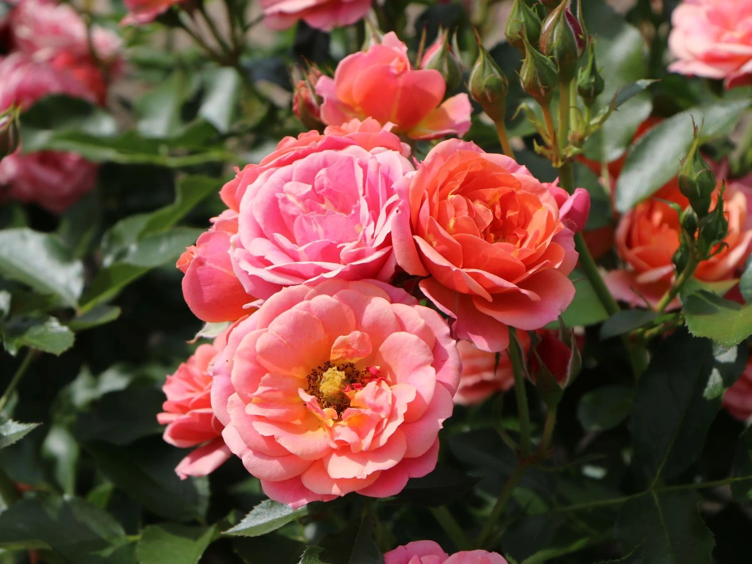 Keine Sorge, nur weil die Zwergrose ‚Mandarin‘ ® nach einem kaiserlichen Beamtentitel in China benannt wurde, ist sie keine komplizierte Sorte. Die farbenprächtige Rose lässt ihre rosaorangen, gefüllten Blüten in Büscheln in Erscheinung treten. Dank der Schönheit ihres unvergleichlichen Farbenspiels können sie locker auf Duft verzichten.