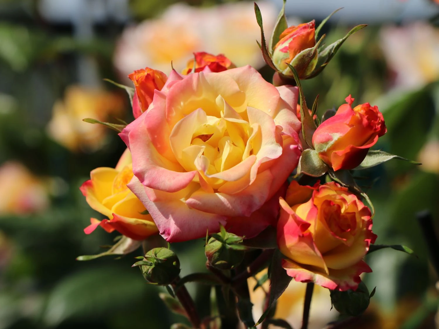 Außergewöhnlich scheint für diese Sorte noch untertrieben zu sein. Hier hat sich der Züchter Rosen Tantau möglicherweise selbst übertroffen. Die Zwergrose ‚Tropical Clementine‘ ® ist ein Gesamtkunstwerk geschaffen, dass nicht nur die Herzen von Rosenliebhabern höher schlagen lässt. Sie steht den größeren Vertretern unter den Rosen in nichts nach. Mit ihrer Blütenpracht erhellt die (bot.) Rosa ‚Tropical Clementine‘ ® den Garten. Ob in einzeln oder in einer Gruppe gepflanzt, sorgt sie für Faszination im Hausgarten oder im Kübel auf Terrasse und Balkon. Sie gehört zu den sogenannten Patiorosen und zeichnet sich durch einen kleinen Wuchs aus. Dabei zählt Rosa ‚Tropical Clementine‘ ® zählt zu den Sorten, die sich auf vielfältige Weise im Garten einsetzen lassen. Ausgesprochen gut platziert ist die Pflanze in Beeten, kleinen Gruppen oder in einem Kübel. Terrasse und Balkon setzt sie ebenso in Szene, wie fast jeden anderen Fleck im Garten. Auf jeden Fall sonnig ist dieser zu wählen. Denn die Zwergrose ‚Tropical Clementine‘ ® liebt die warmen Sonnenstrahlen. Die öfterblühende Zierde dieser Rosensorte lässt sich den gesamten Sommer über bewundern. Das Highlight der Zwergrose ‚Tropical Clementine‘ ® sind ihre zweifarbigen Blüten. Diese sind gefüllt und sitzen dicht beieinander. Jedes einzelne Blütenblatt ist knallig Gelb gefärbt. An ihren Rändern zeigt sich eine starkes Pink, das teilweise ins Rötliche reicht. Mit einem schönen Farbverlauf, wirkt diese Komposition malerisch und verleiht dem Garten ein tropisches Flair. Nicht verwunderlich, dass diese Rose den Namen ‚Tropical Clementine‘ trägt.