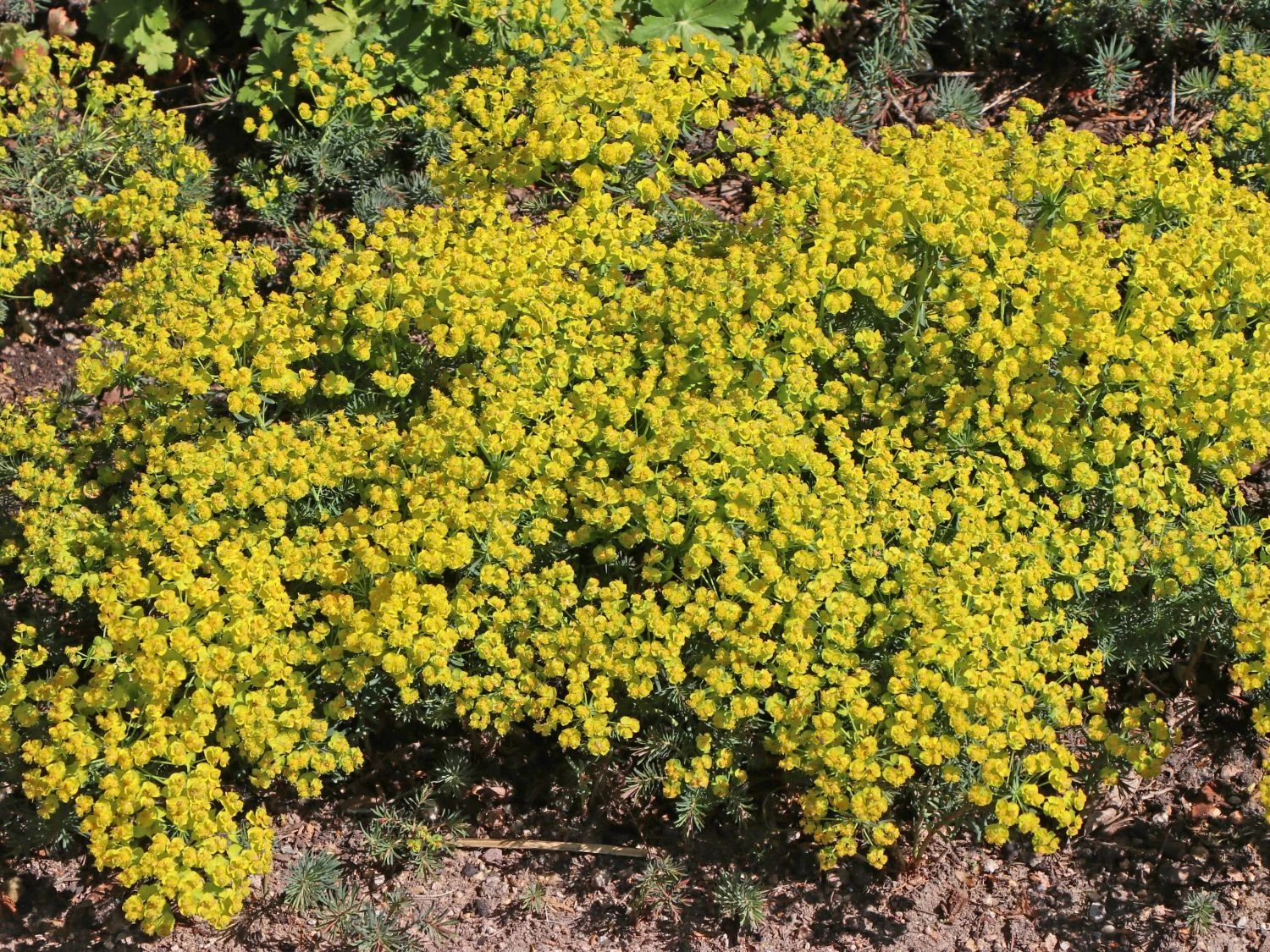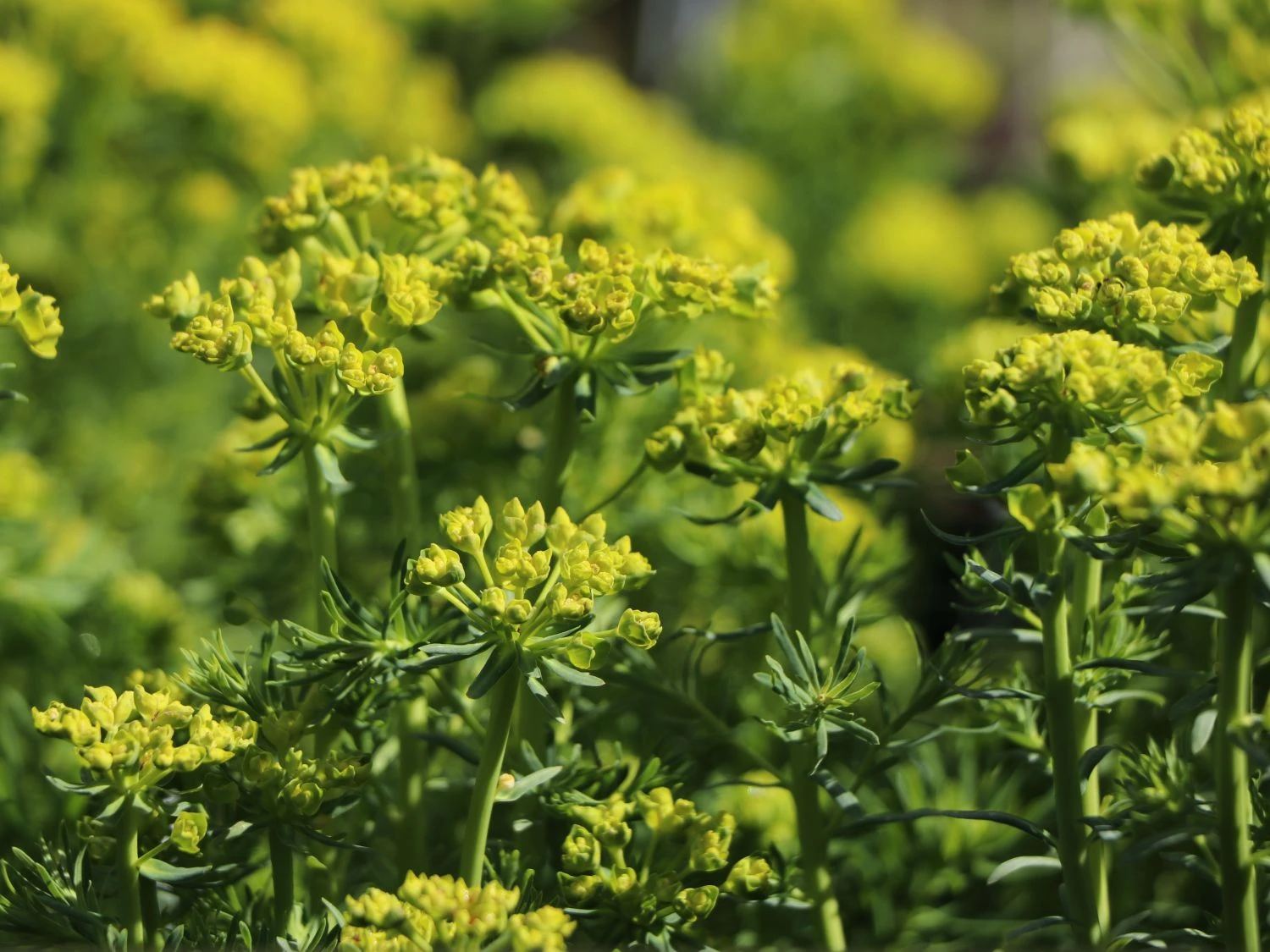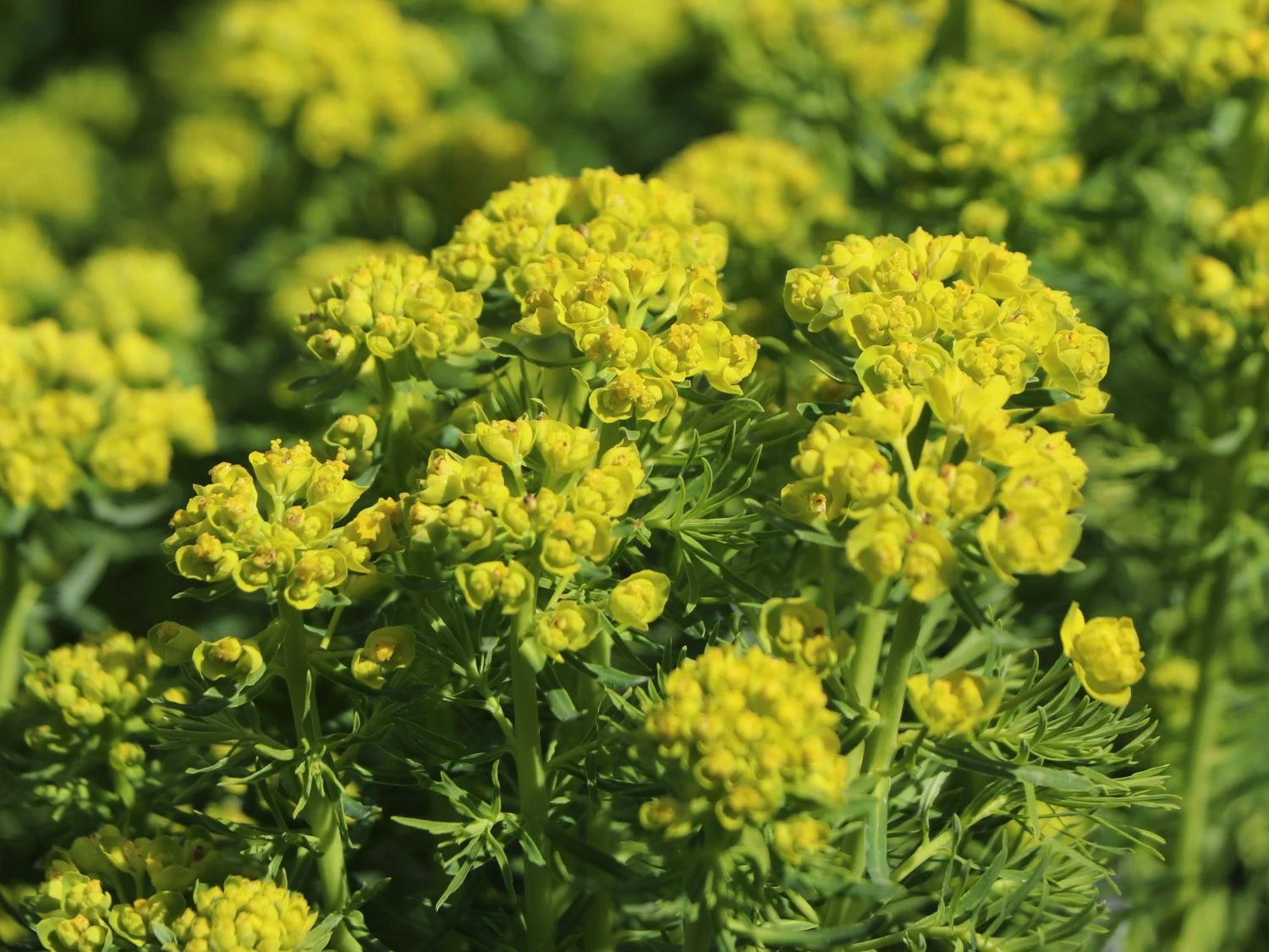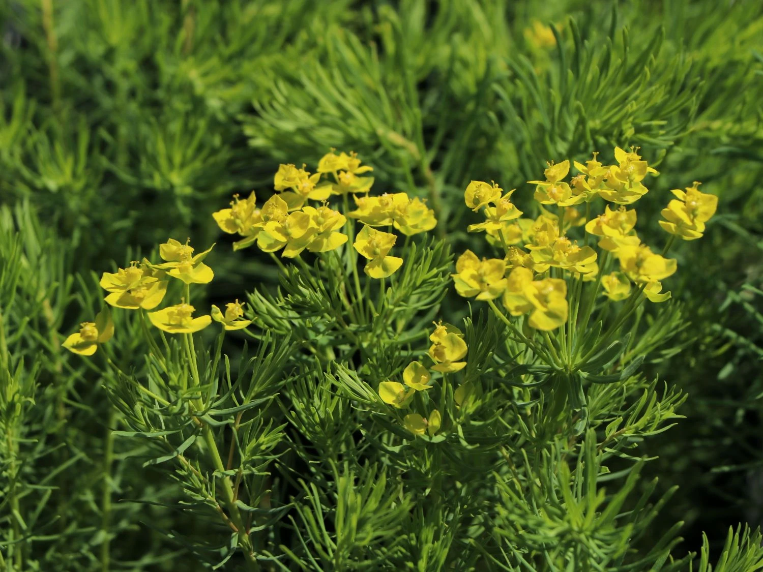 Die Zypressen-Wolfsmilch ist dekorativ und anpassungsfähig. Schon von Weitem leuchten die gelben Blüten der schönen Wildstaude und bilden gelbe Teppiche. Die nadelartigen Blätter der (bot.) Euphorbia cyparissias verleihen ihr ein luftig-lockeres Aussehen.