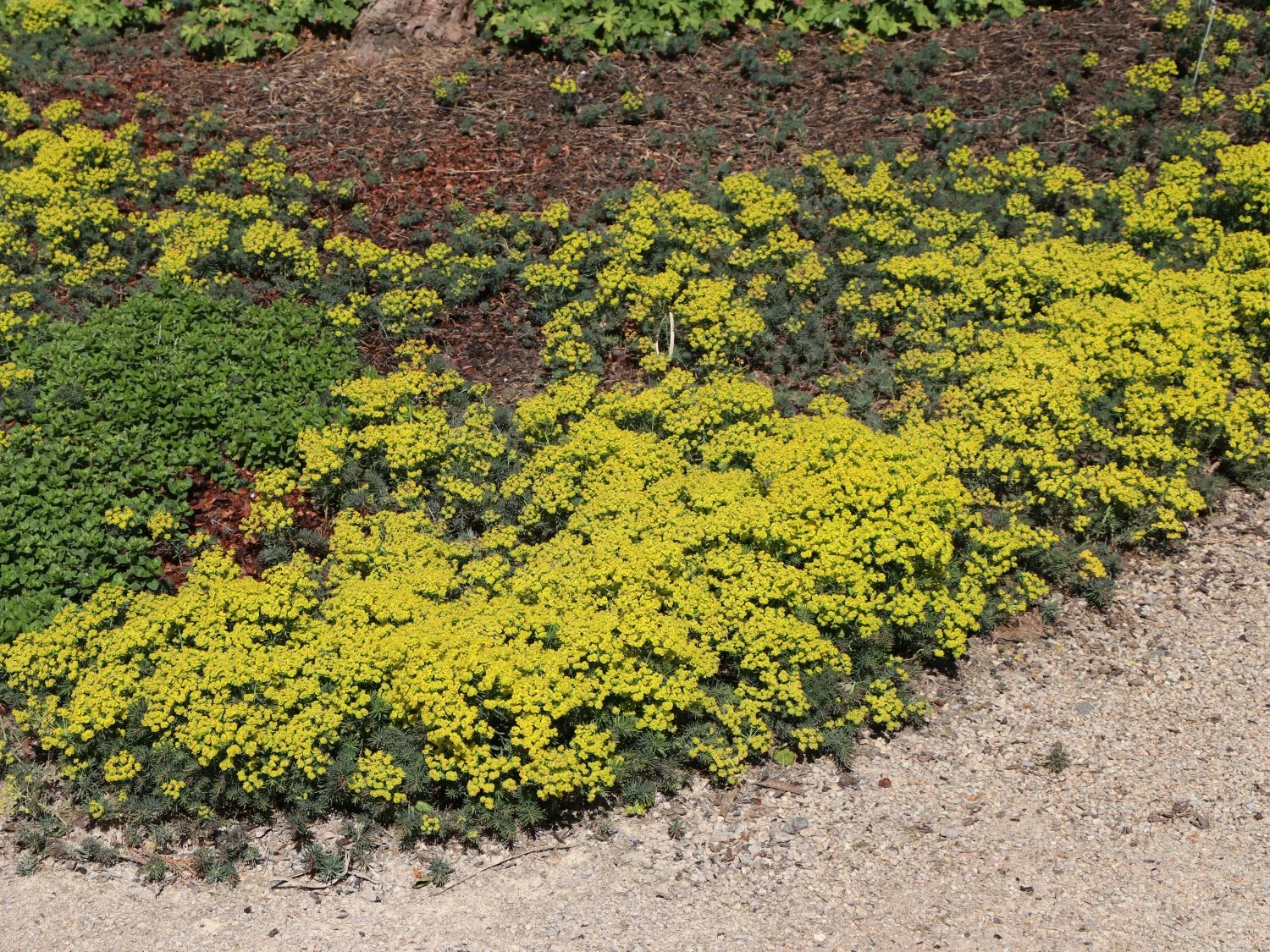 Besonders gut gedeiht die Zypressen-Wolfsmilch auf sandigen Böden. Sie bildet zahlreiche Ausläufer und hat einen regen Verbreitungsdrang. Die Staude eignet sich aus diesem Grund eher für größere Flächen. Damit sie nicht sofort das gesamte Gebiet erobert, setzt der Gartenfreund sie nicht in formale Gärten mit strukturierten Gartenbeeten. Denn diese nimmt sie in Windeseile für sich ein. Die Euphorbia cyparissias eignet sich optimal für Pflanzgruppen. Dann kann die Staude ihren Wildblumen-Charakter ausleben. Der Gartenfreund gibt der Pflanze Platz zum Ausbreiten. Vorzüglich passt die Zypressen-Wolfsmilch in naturnahe Gärten oder Pflanzszenerien im öffentlichen Raum. Auch für das Begrünen von Dächern oder zum Unterpflanzen an sonnigen Gehölzrändern ist die gelbe Pracht bestens geeignet.